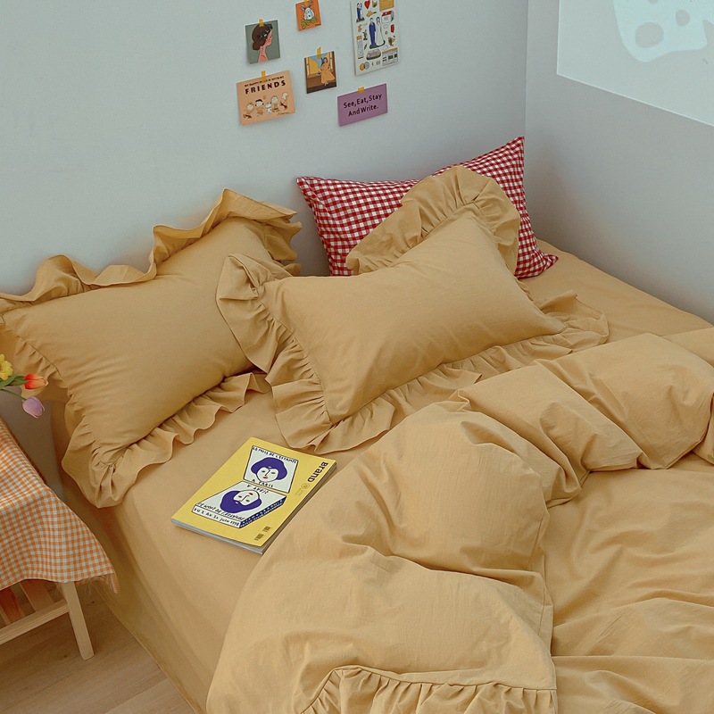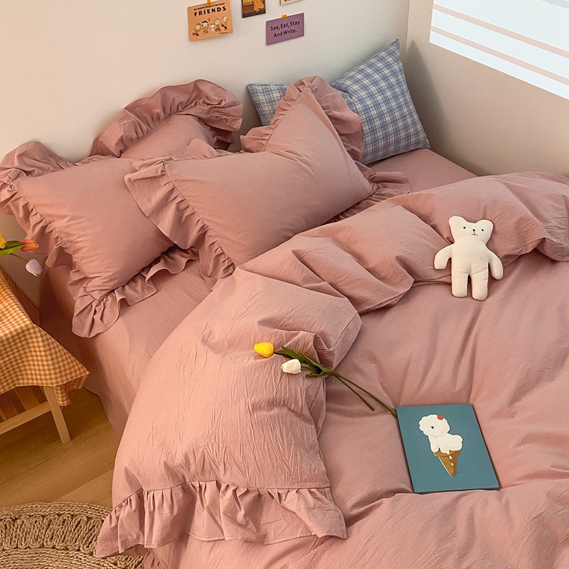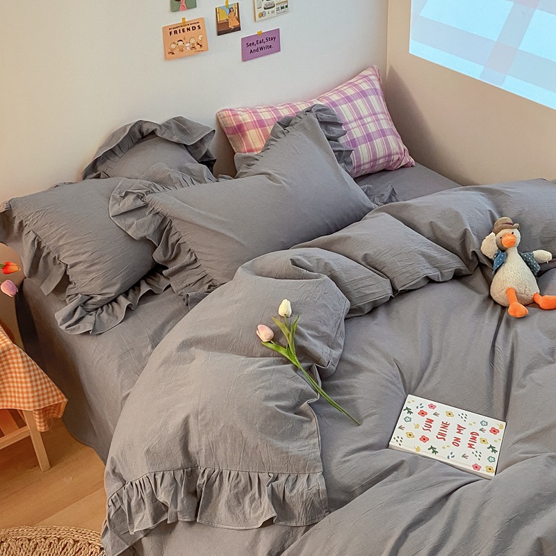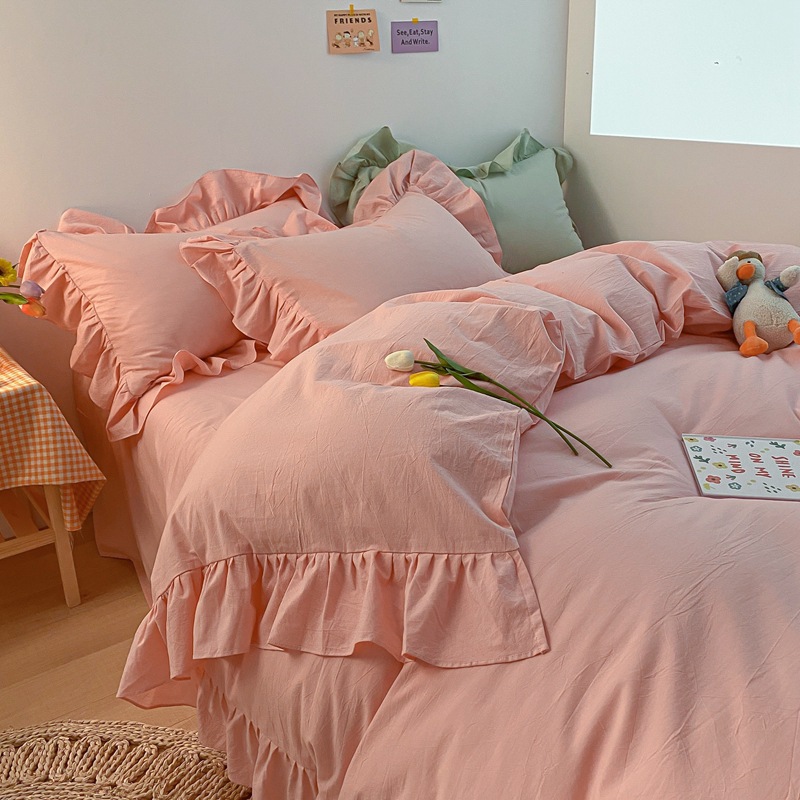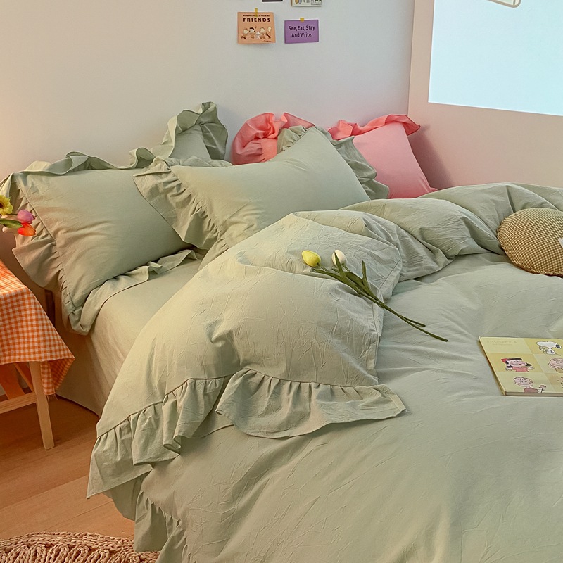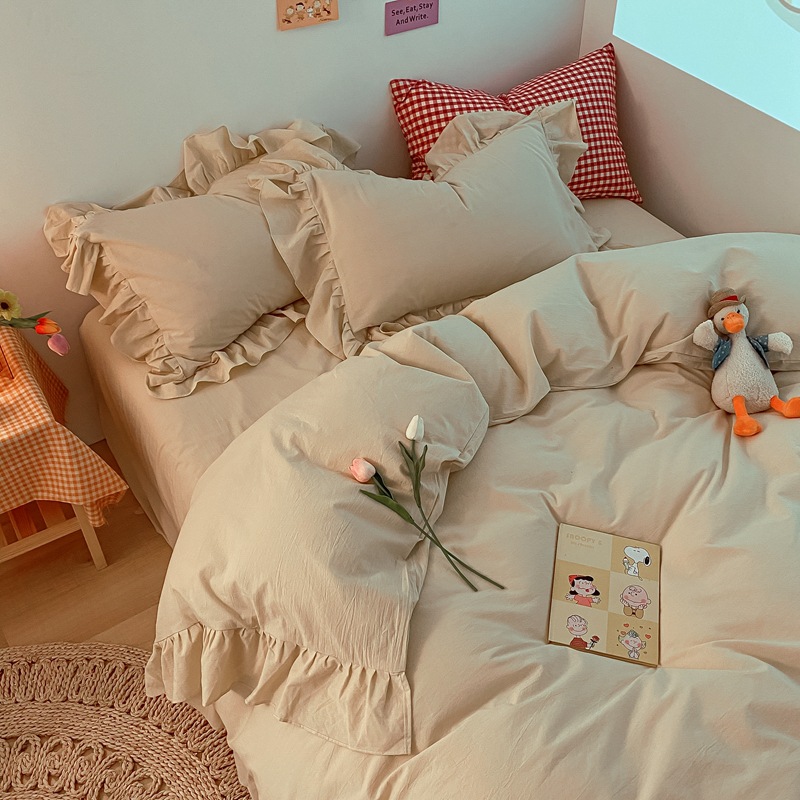 Ins Simple All Cotton Washed Cotton 4-Piece Set Of Cream Color Korean Lace Quilt Cover Sheet Pure Cotton Bedding