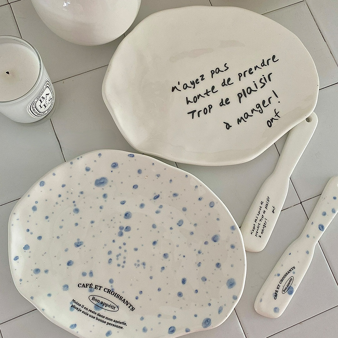 Color: Dessert Plate - Black Letters, Dessert Plate - Ink Point, Jam Knife - Black Letters, Jam Knife - Ink Point