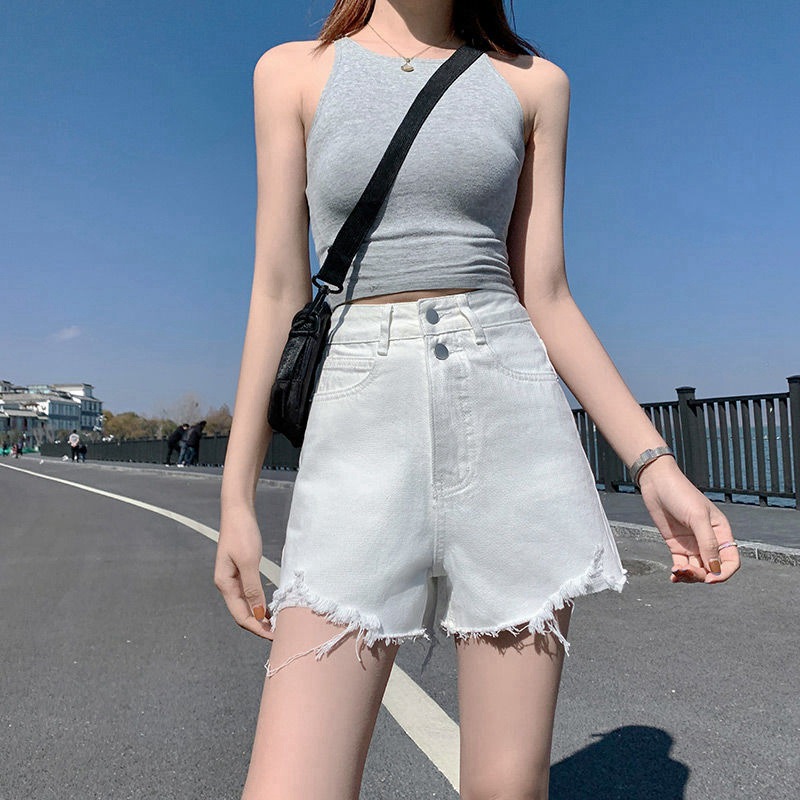 Ins-style Trendy Ripped Denim Shorts For Women Summer High-waisted A-line Design