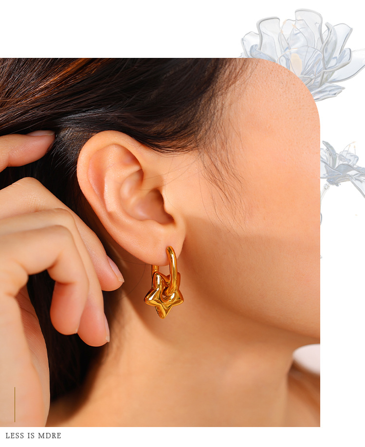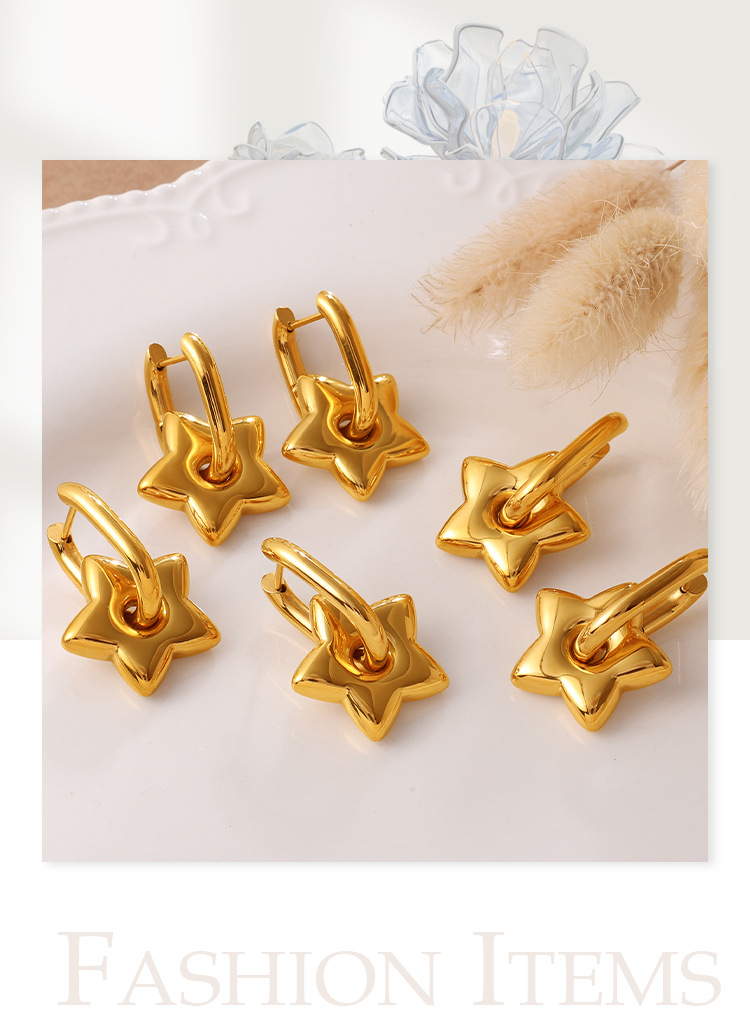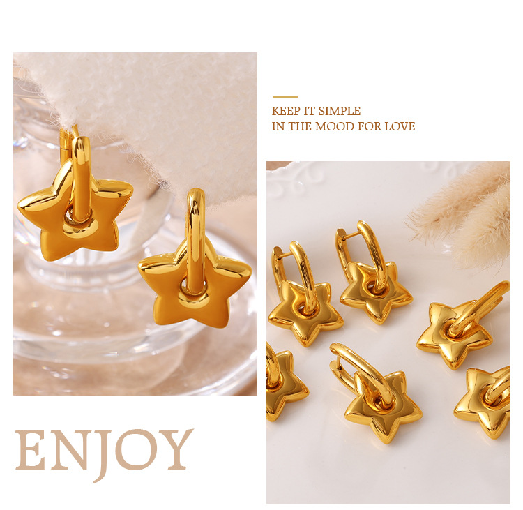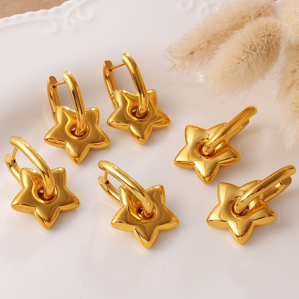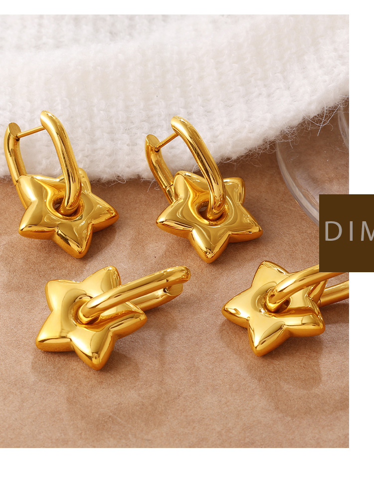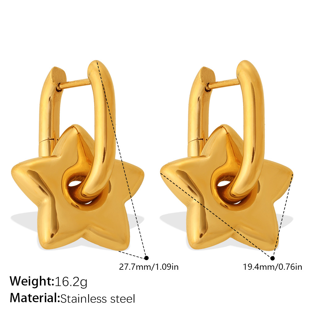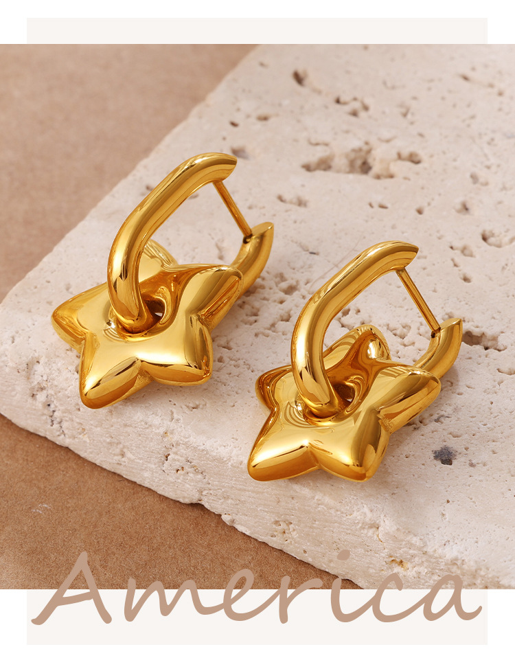 INS Sweet Cool Style Versatile Gold Five-pointed Star Earrings, Stainless Steel 18K Gold Plated, Fashion Daily Earrings