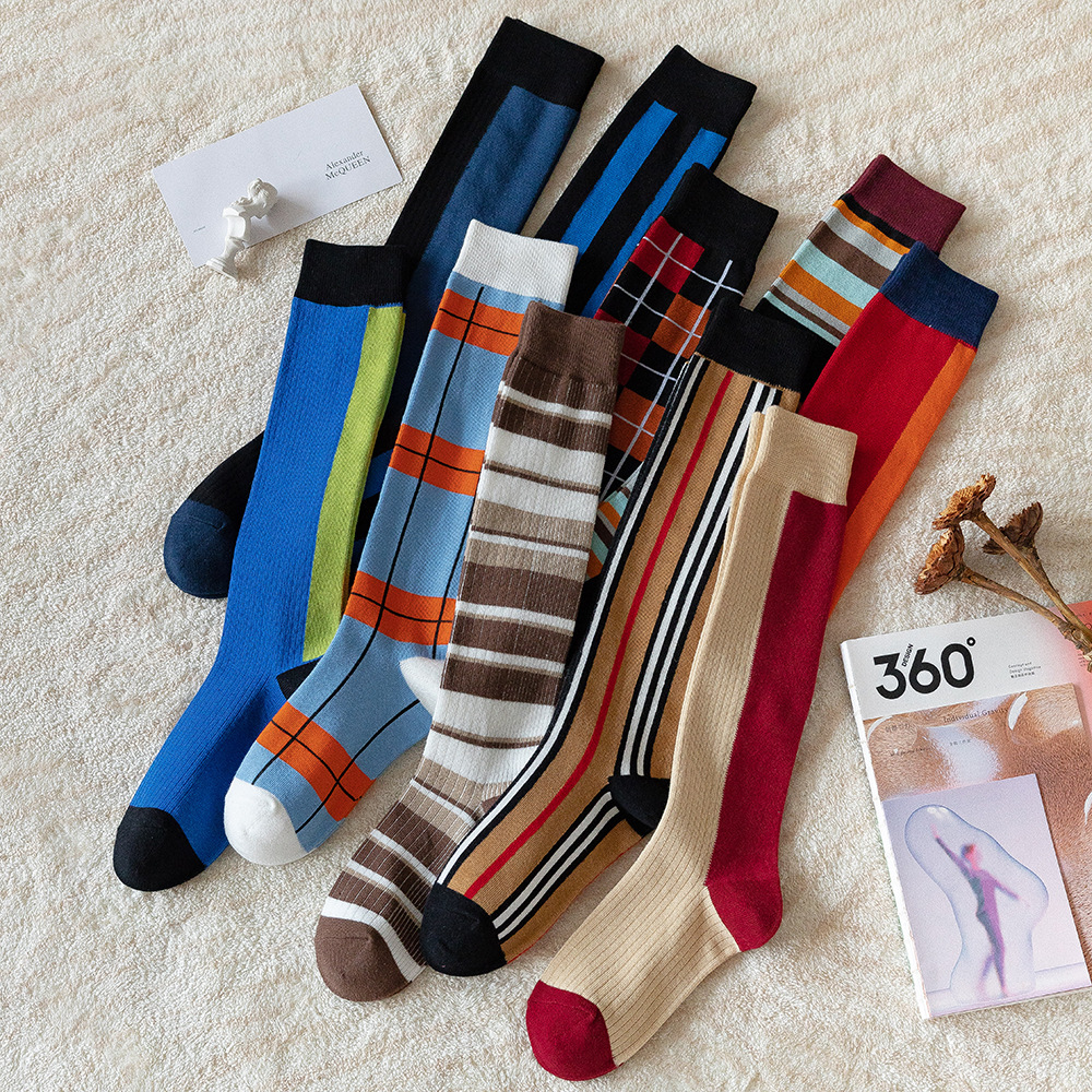 Color classification: Bright red, orange and yellow strips, gray and blue, camel vertical strips, beige red vertical strips, dark blue, yellow and green strips, black blue vertical strips, black red lattice, wine red socks, coffee rib pattern, black and blue small vertical strips