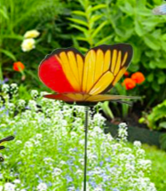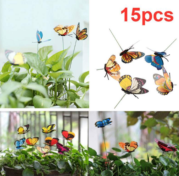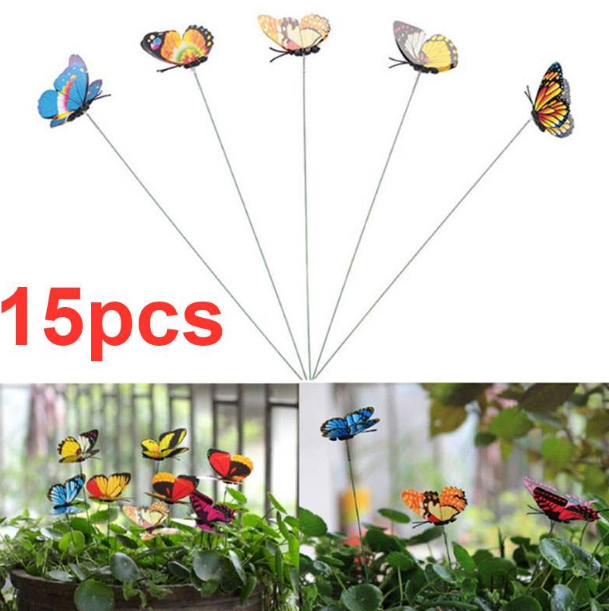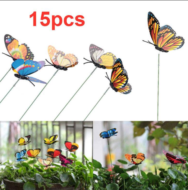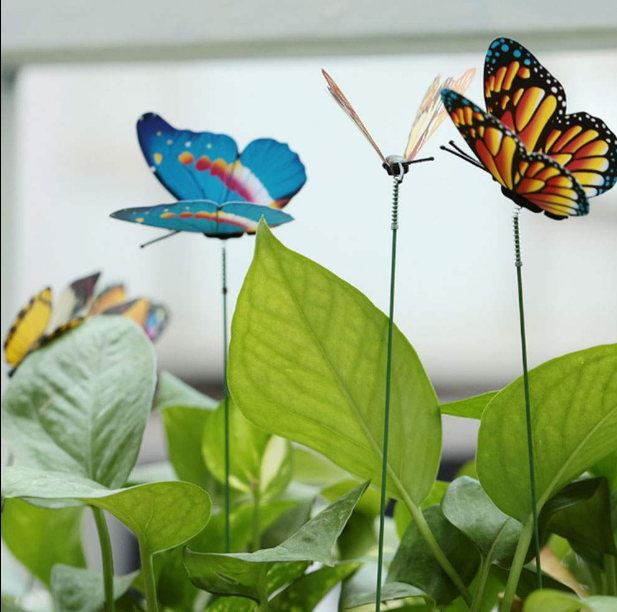 The butterflies are attached to a small spring at the top of the stick so that they can move freely
