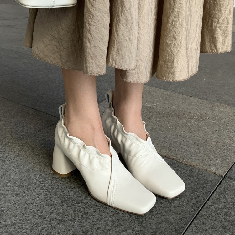 Inside And Outside All Women's Shoes Thick Heel Square Toe Elastic Deep-mouth Single Shoes