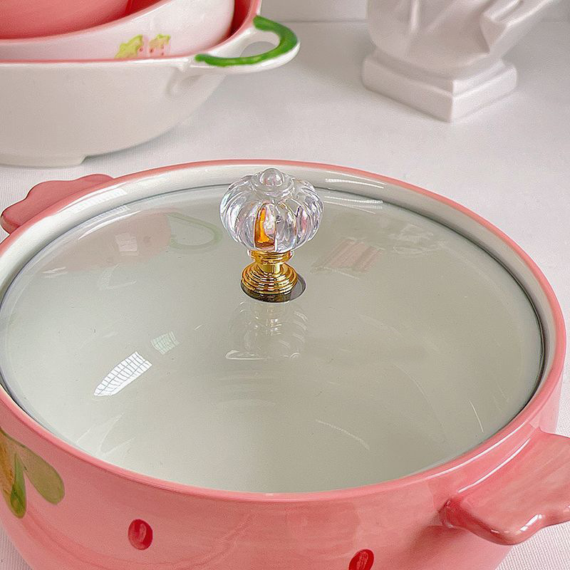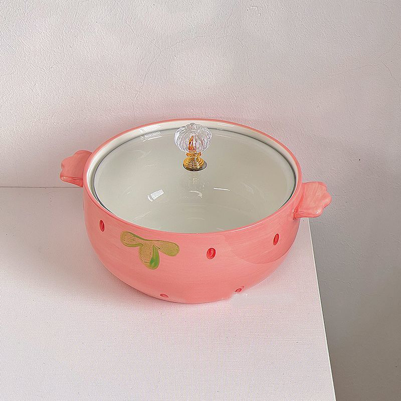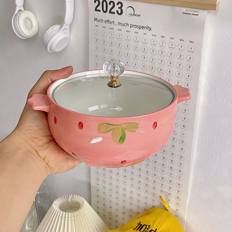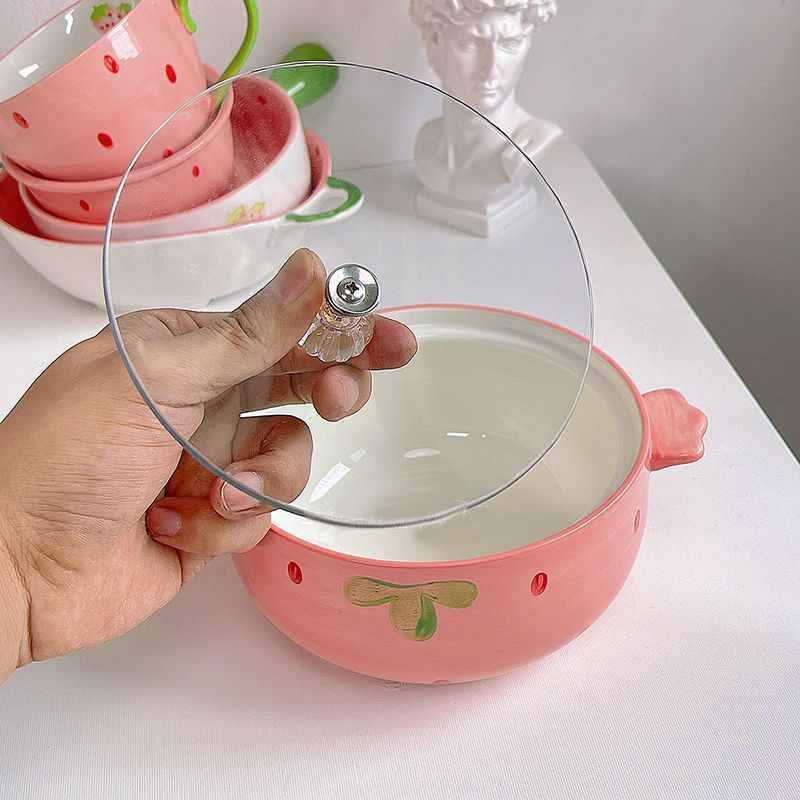 Strawberry instant noodle bowl size: with handle 19.5cm, caliber 15cm, height 8cm