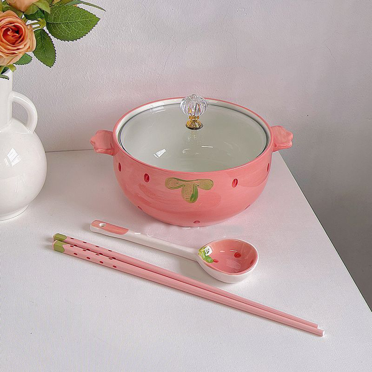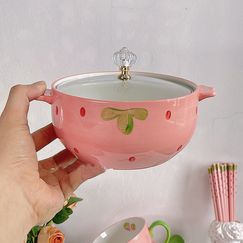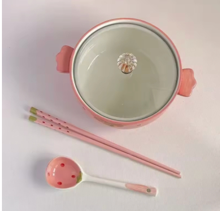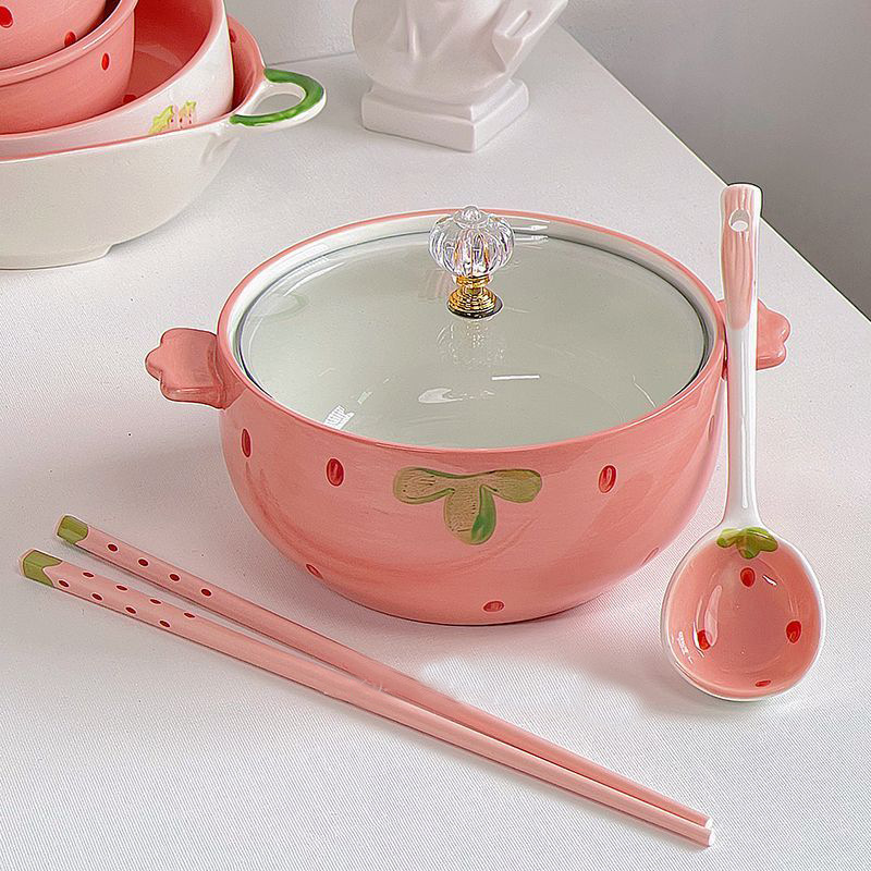 Colors: [Strawberry] Small Soup Spoon, [Strawberry] Ceramic Chopsticks, [Strawberry] Lidded Instant Noodle Bowl, [Strawberry] Lidded Instant Noodle Bowl + Spoon + Chopsticks