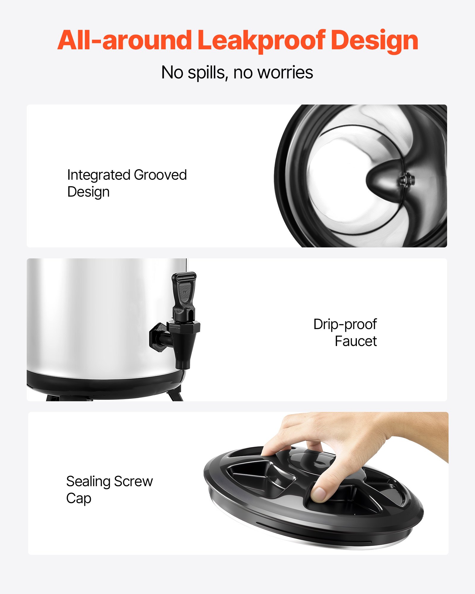 Real-Time Temperature Display: Built-in temperature display lets you monitor drinks in real-time, ensuring perfect hot or cold serving. Large capacity suits commercial use, making this insulated beverage dispenser ideal for busy beverage stations