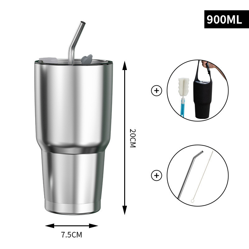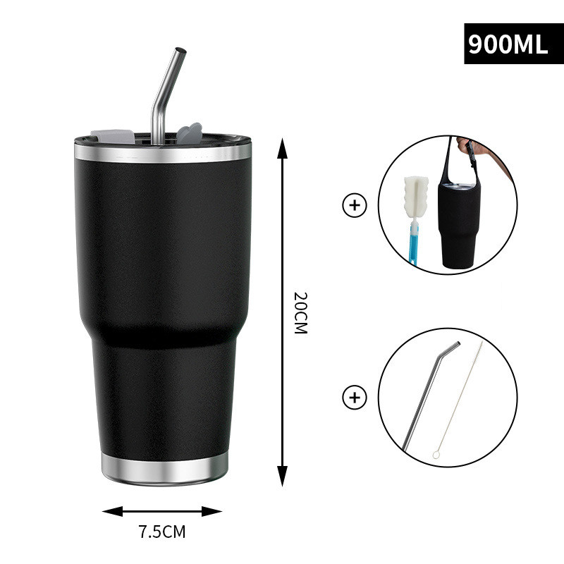 Color: natural color 900ML (straw+straw brush), natural color 900ML (straw+straw brush+cup cover), black 900ML (straw+straw brush), black 900ML (straw+straw brush+cup cover)