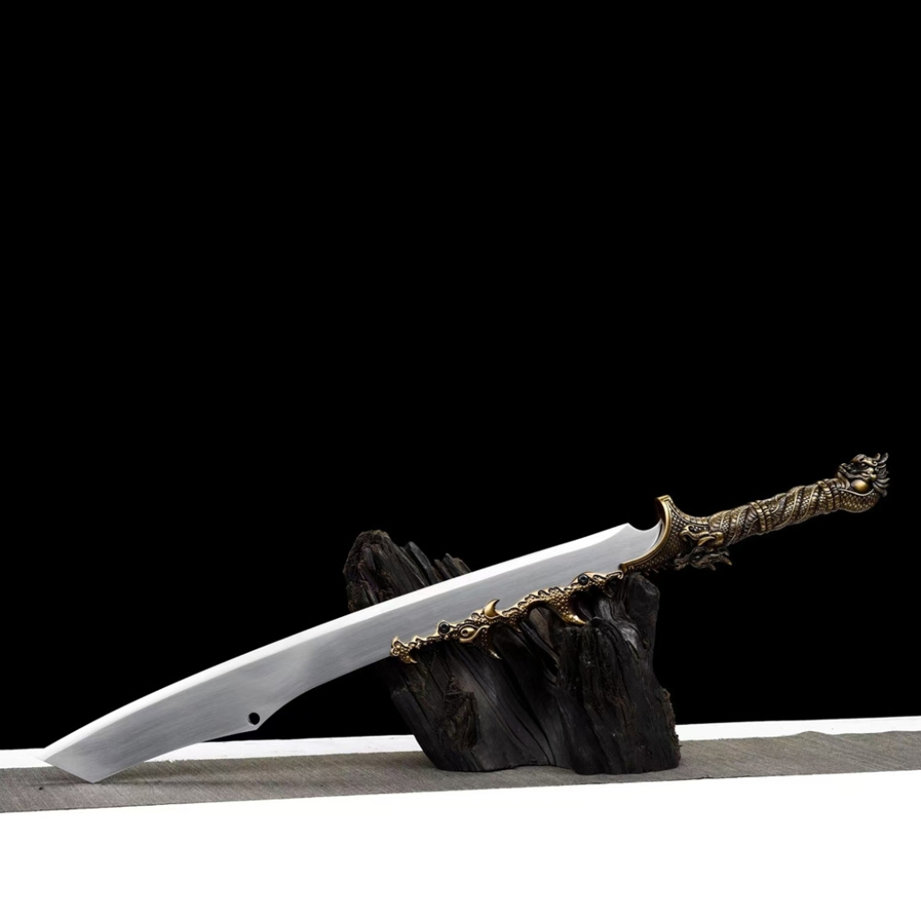 Integrated Blades Flaming Frenzy Saber, Dragon Slaying Saber, Long Style Ox Tail Saber High Manganese Steel Unsharpened Cold Weapon Crafts