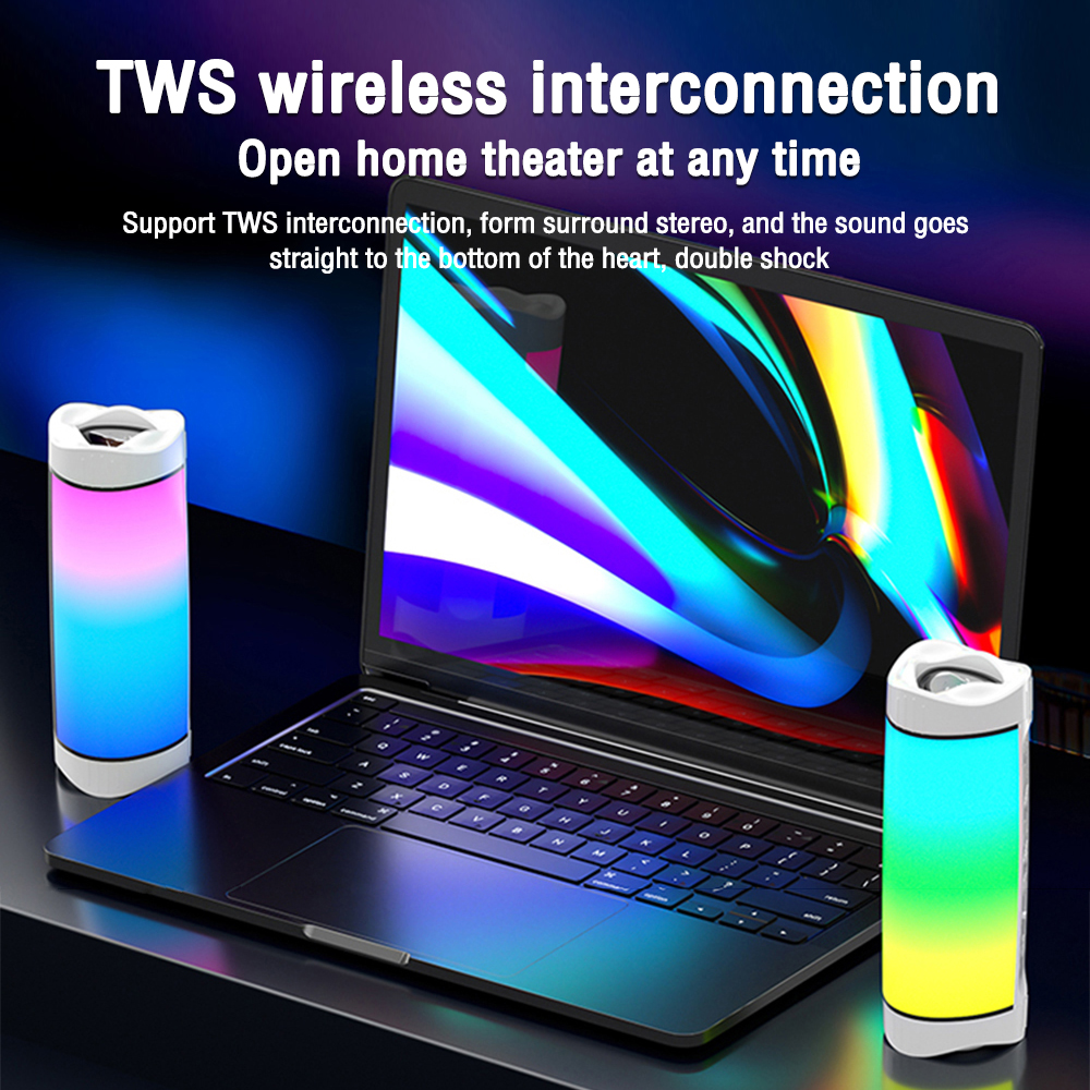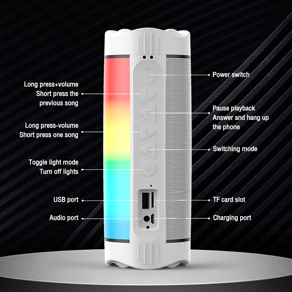 1. Colorful light effect/multi-core sound effect/neon light effect/subwoofer/double speaker large diaphragm/antimagnetic noise reduction/eight playback modes.