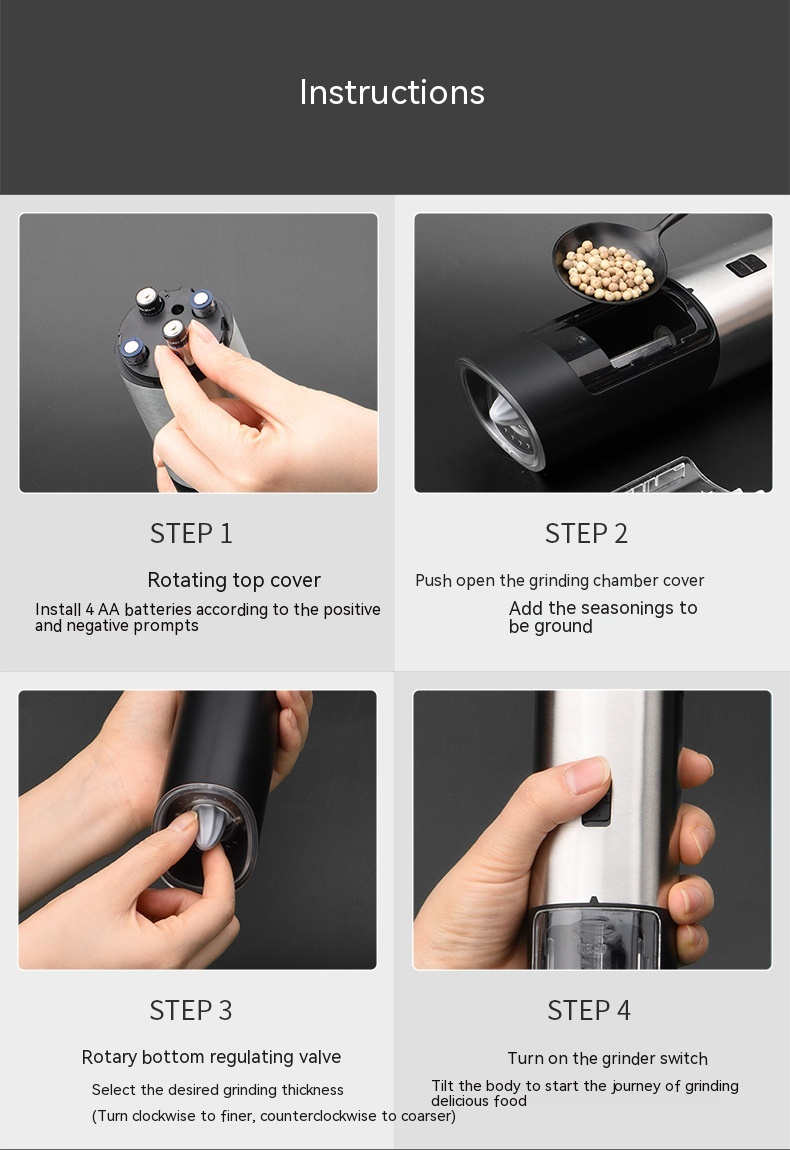 Color: ABS plastic pepper mill, stainless steel pepper mill