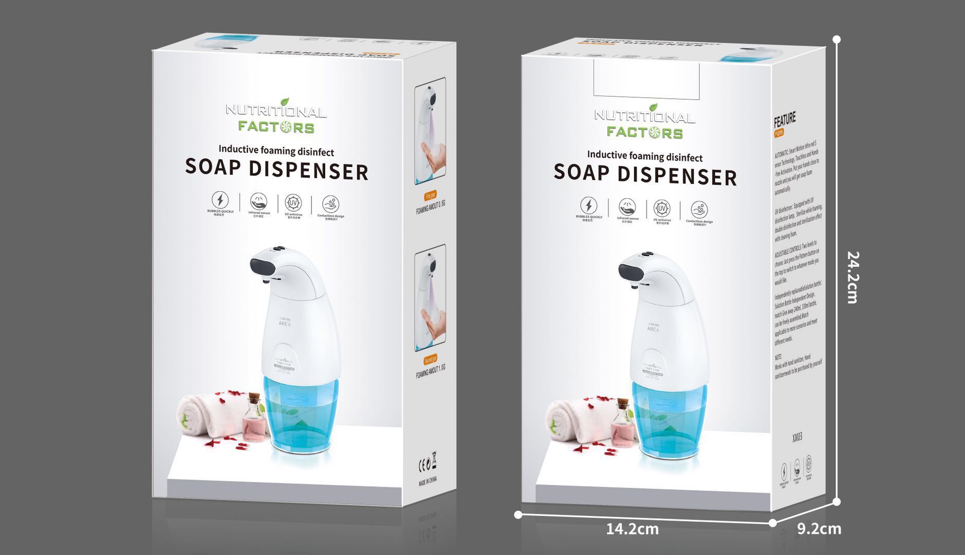 Product name: Intelligent Induction Foam MachineBattery: 4 "5" batteriesProduct material: waterproof and environmentally friendly materialProduct size: 23.5* 8.2* 8.2cm