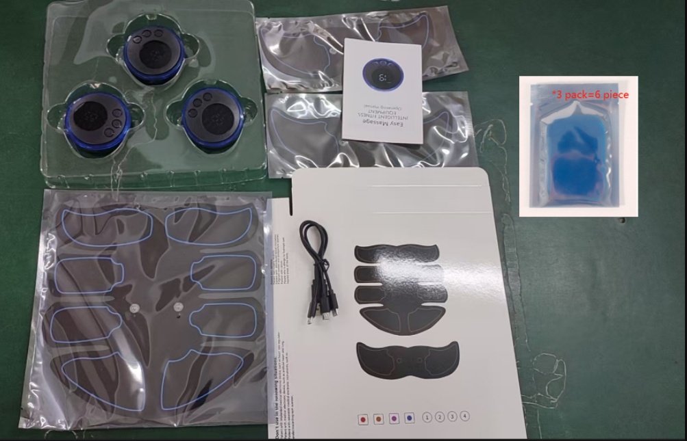 Host *3/ Abdominal Sticker *1/ Arm Sticker x2/ Instruction Manual *1/USB Cable *1+6 gel