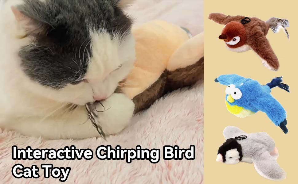 Interactive Chirping Bird Cat Toy, New Flying Interactive Flapping Chirping Bird Cat Toy, Flapping Bird Cat Toy For Indoor Bored Cats, Flapping Bird Cat Toy