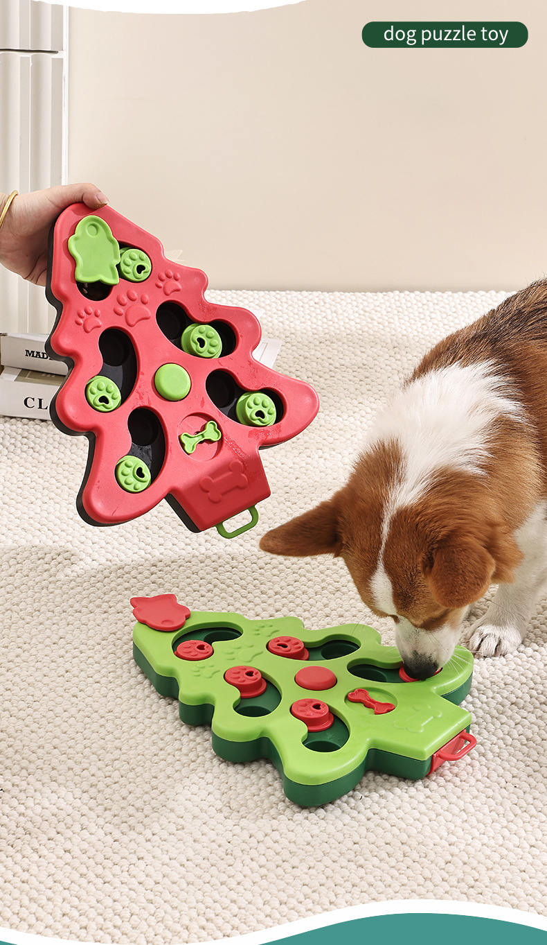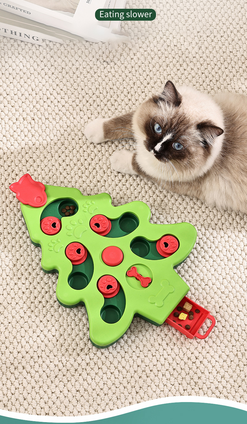 Interactive Dog Puzzle Toys Christmas Tree Dog Slow Food Bowl Funny Pet Training Toy For Dogs Cats Non-slip Dog Bowl