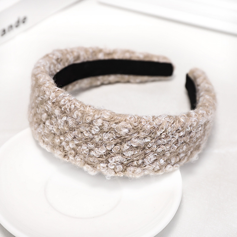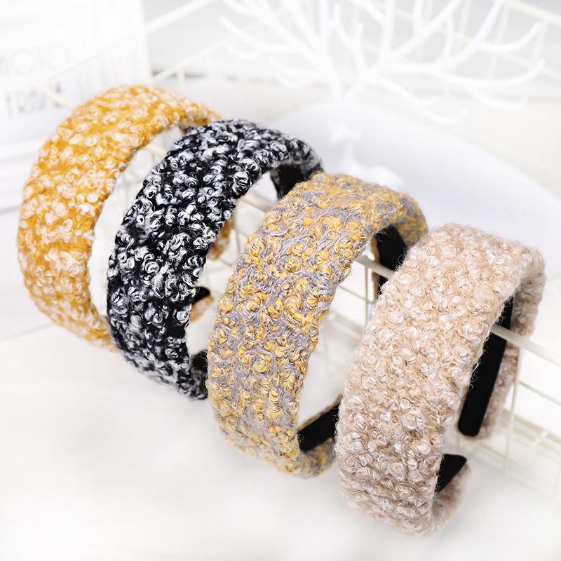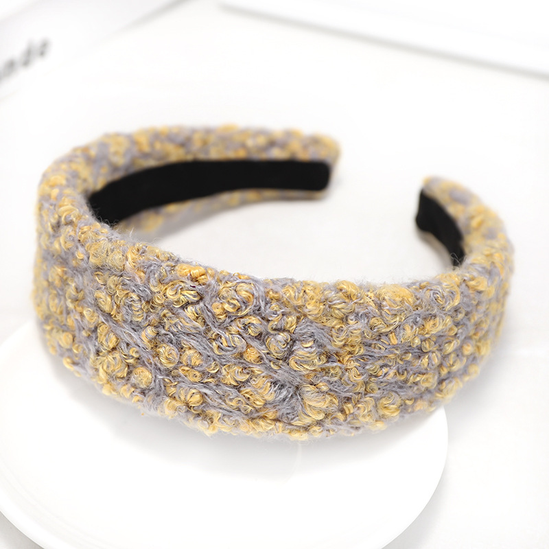 B: Gray Blue + Yellow Wool Curly Hair Hoop