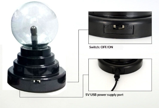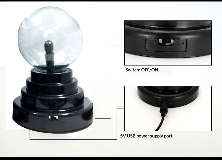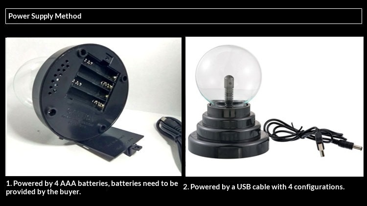 Light color: 3-inch USB ion sphere (dual power supply via USB or 4 AAA batteries; batteries not included)