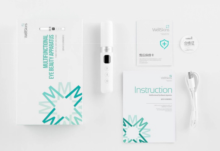 Packing list: Weixin warm color light massage eye beauty instrument, USB charging cable, warranty card, manual, certificate.
