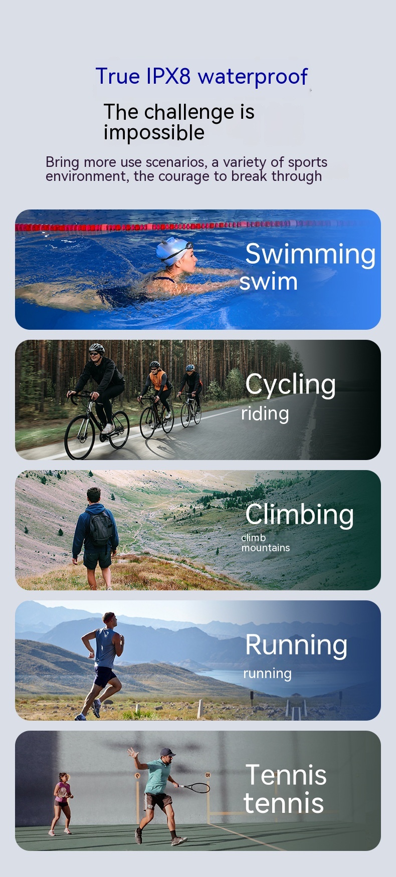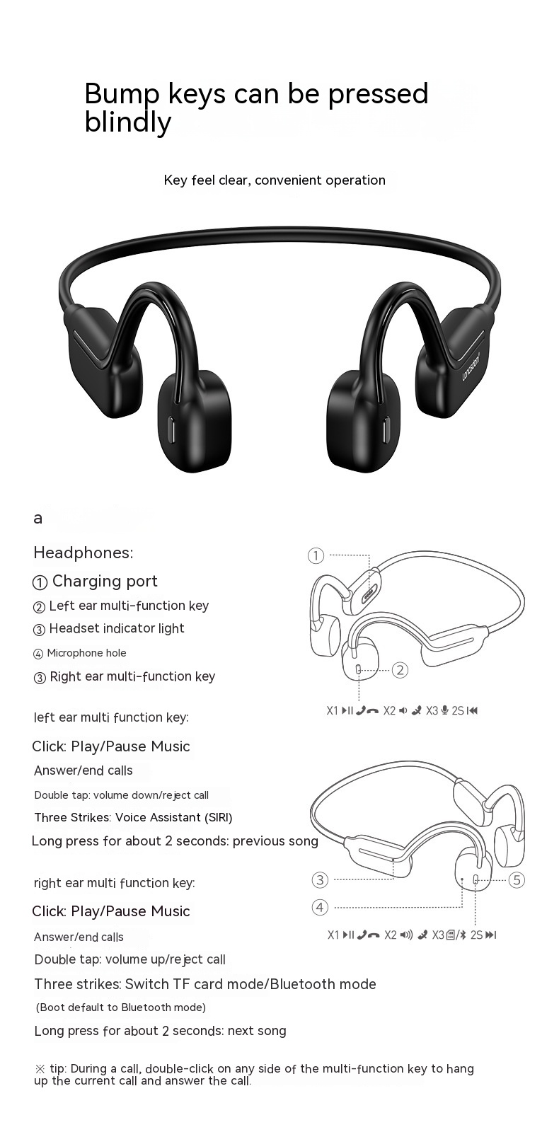 Functions: Waterproof, bone conduction, ultra-long life battery battery, call function, voice control, music support, e-sports low latency