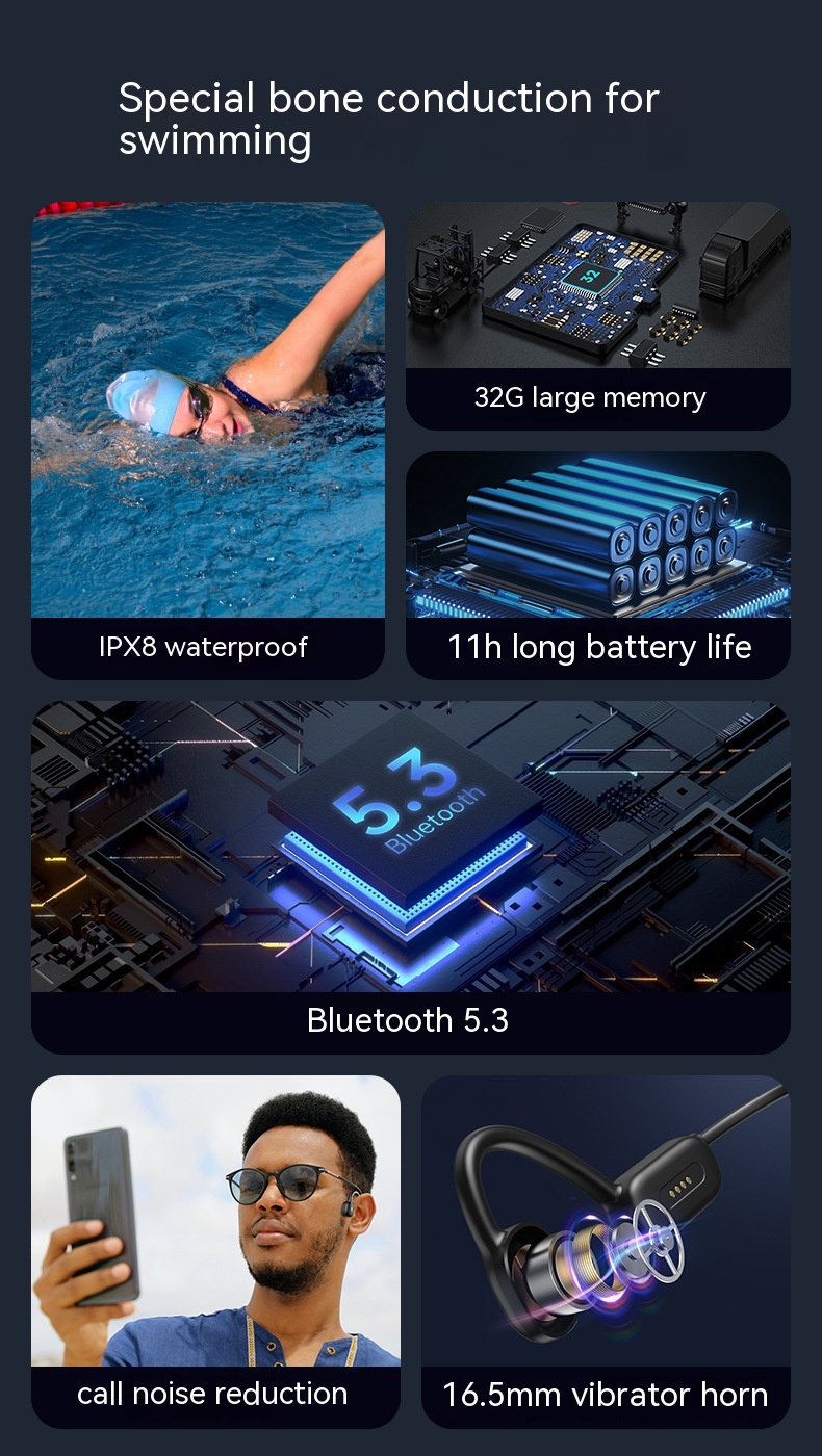 Ipx8 Level Waterproof Swimming Comes With 32G Memory True Wireless Bone Conduction Headset