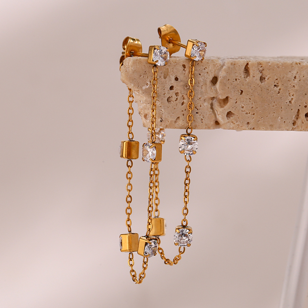 Color: zircon small square diamond chain earrings
