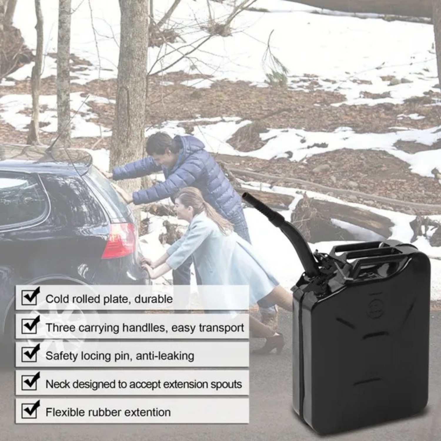 You can commonly seen petrol diesel storage can in the gas station. Here comes this 20L Portable American Fuel Oil Petrol Diesel Storage Can, a practical tool in daily life. You can have this can to store fuel oil or petrol etc. Made of high-class material and with strict test, this storage can is durable and reliable to use. It wont cause any danger during usage. It gets a large capacity for accommodating plentiful liquid. Designed into compact size, it is convenient for daily carrying. Also, it comes attached with a spout for easy operation. Come and have a try!