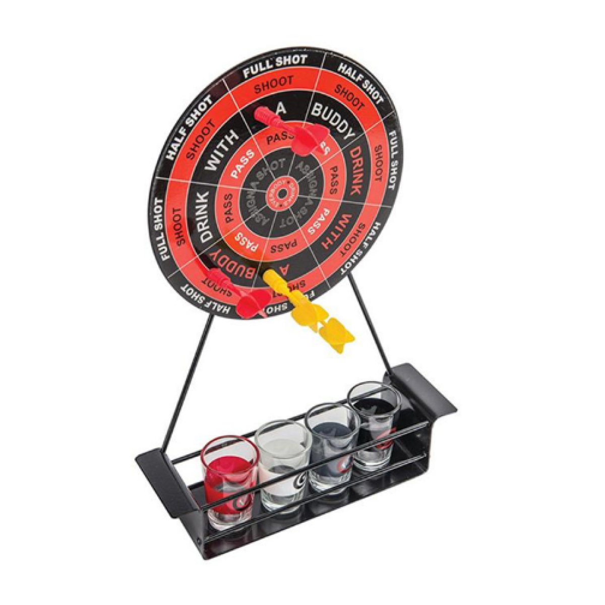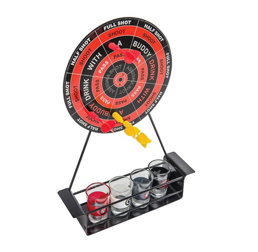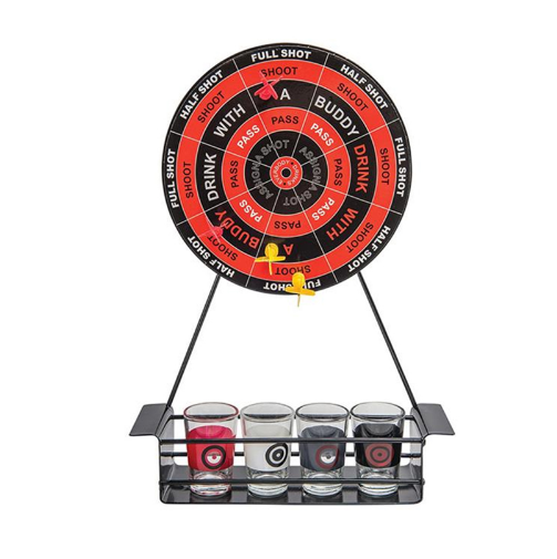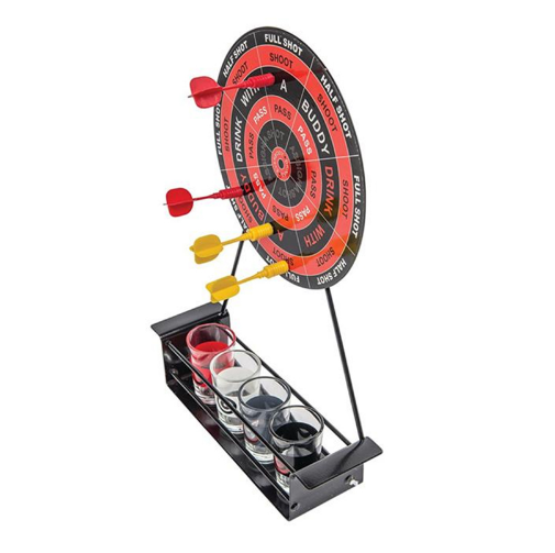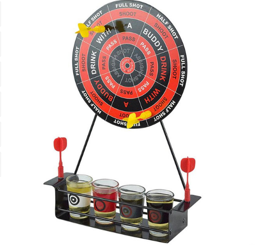 Wine rack material: metal wine glass material: glass dart material: plastic (top with magnet)