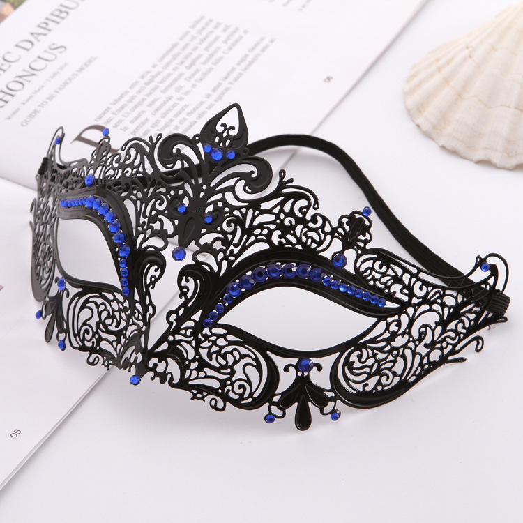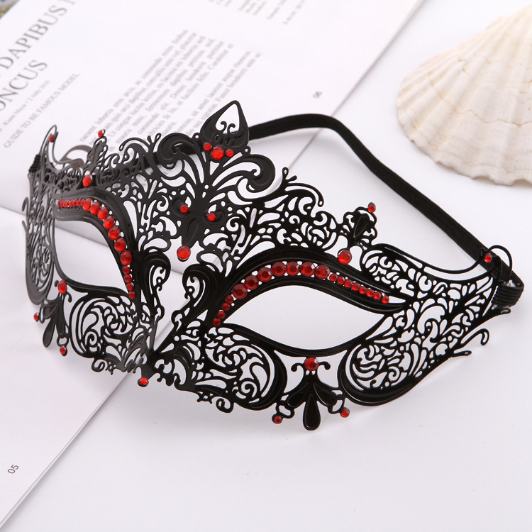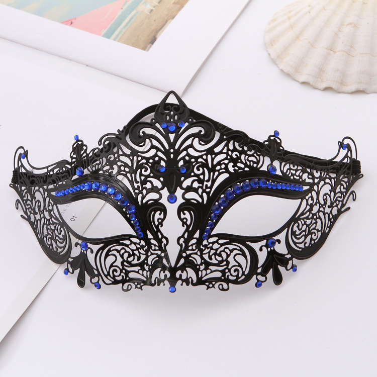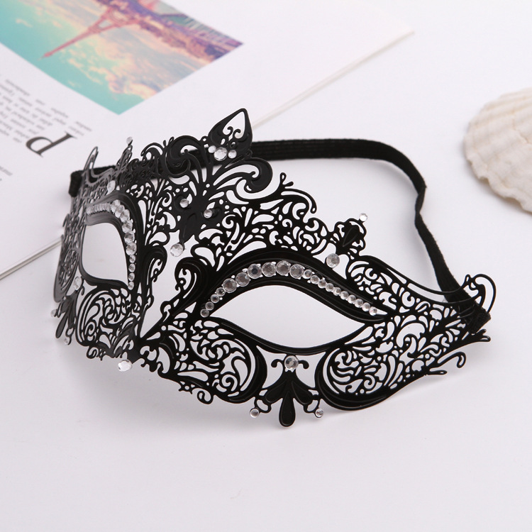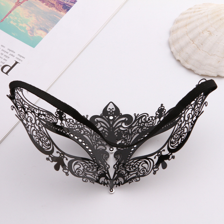 Iron Mask Metal Mask Cat Head White Metal Hollow Diamond Eye Mask