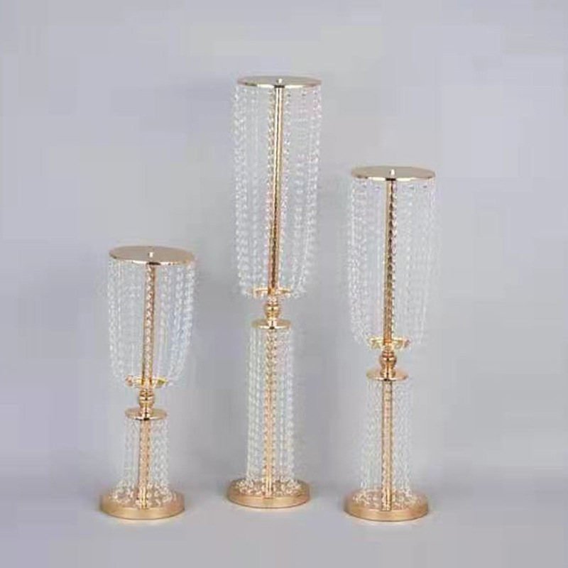 Iron Plating Small Waist Crystal Candlestick Party Wedding Banquet Hall Hotel Table Flower Stand Decoration