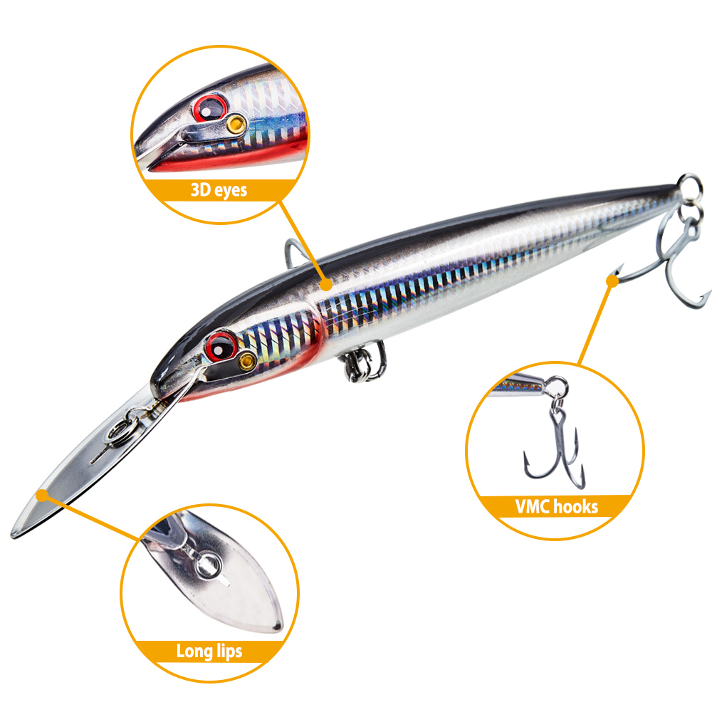1. Classic Mino design, 3D simulation of fish eyes, laser effect of fish body, good fish lure effect