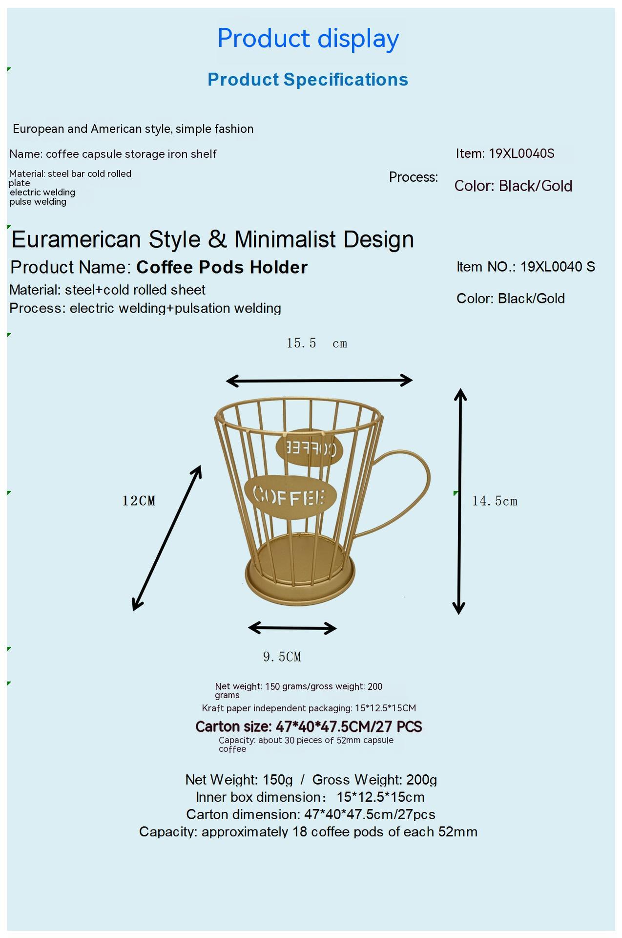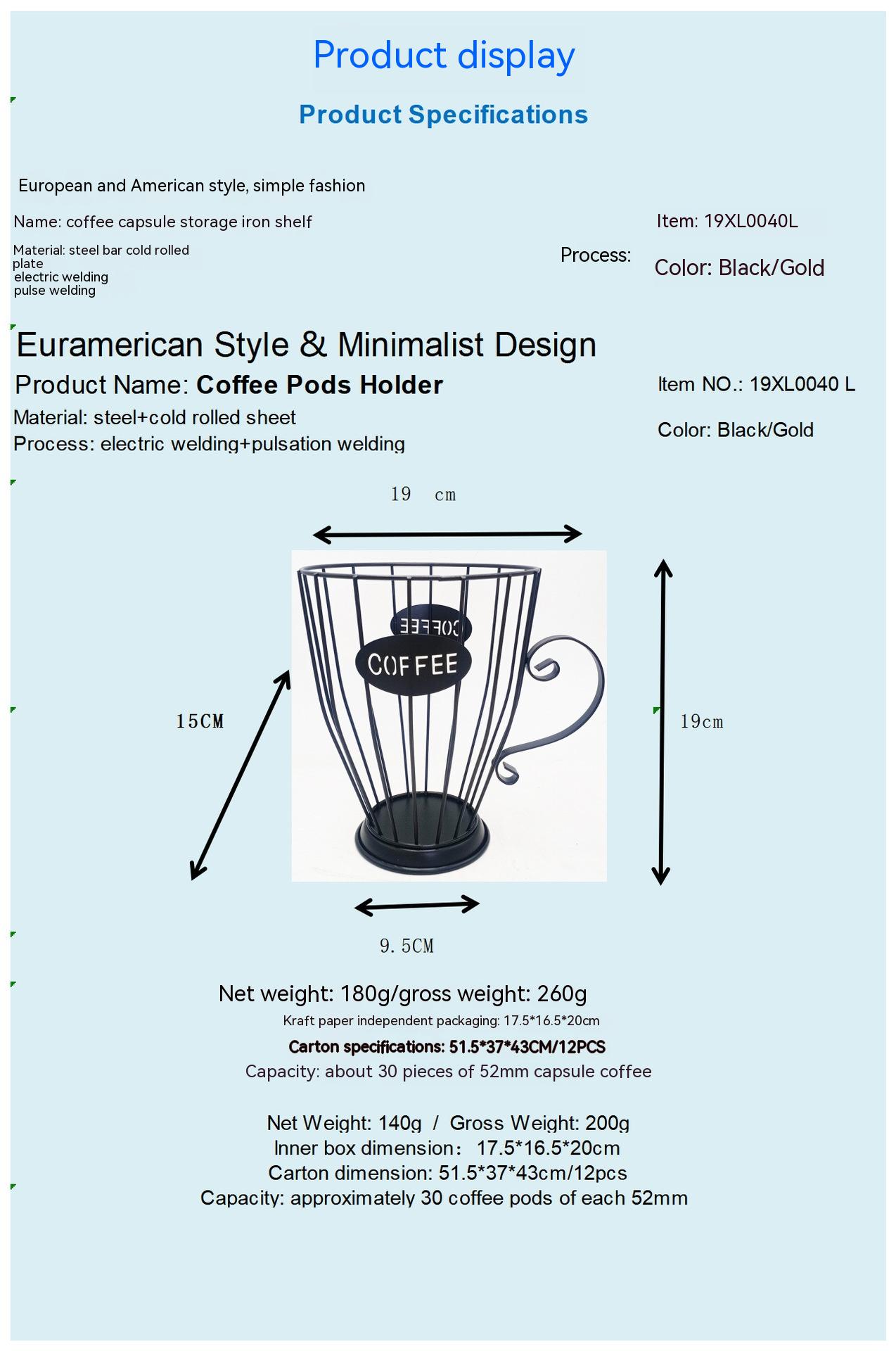 Iron Wire Coffee Capsule Storage Basket Straight Edge Cup Shape