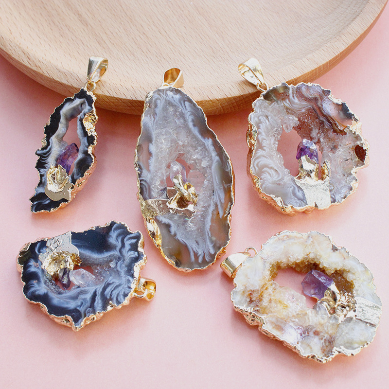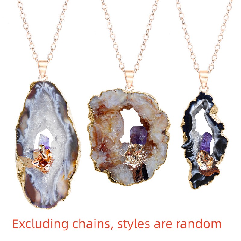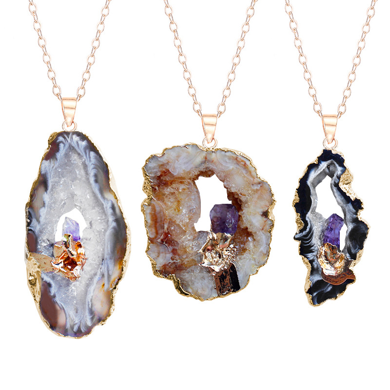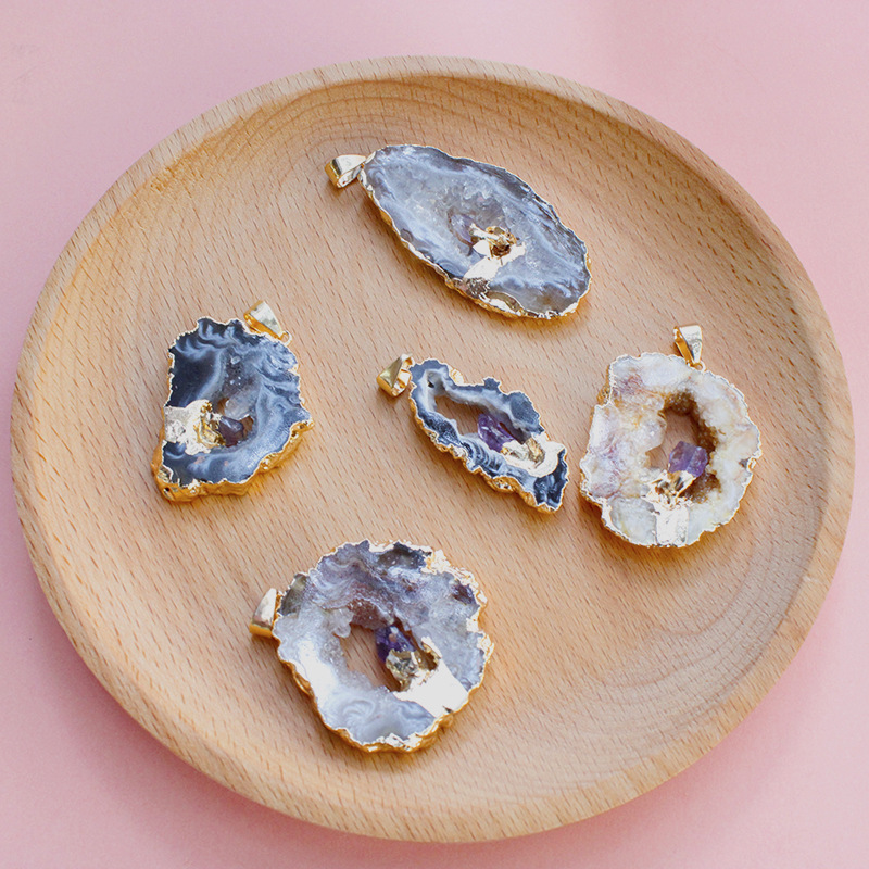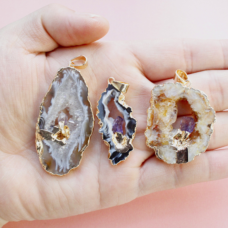 Process: Electroplating edge wrapping+hand inlaid amethyst