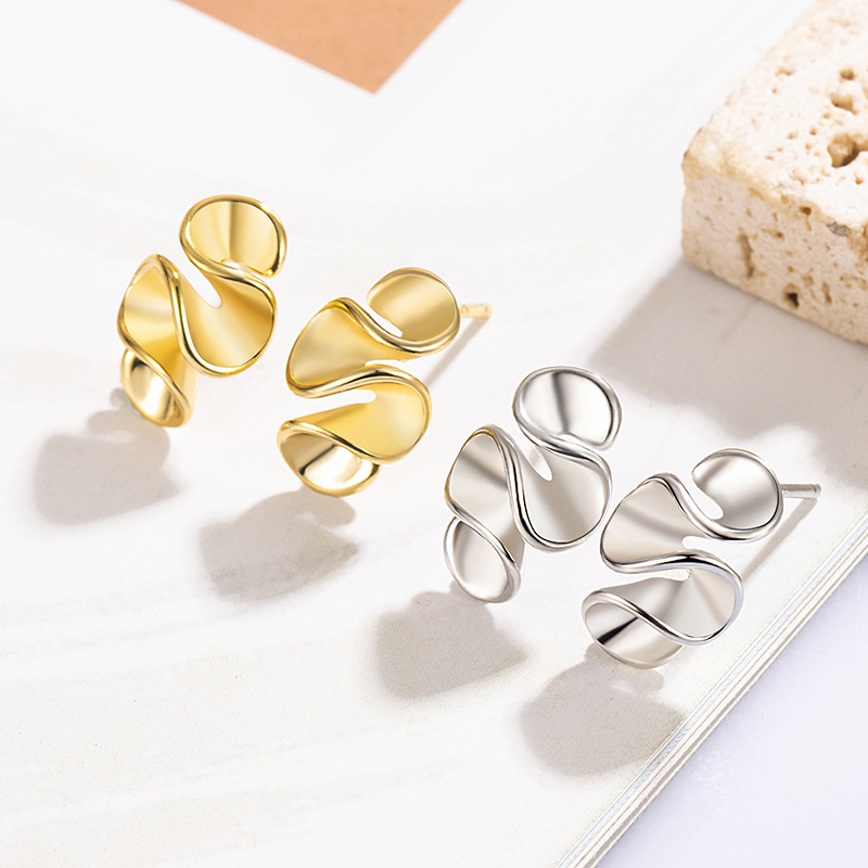 Color: cream flower stud earrings (yellow gold), cream flower stud earrings (white gold color)