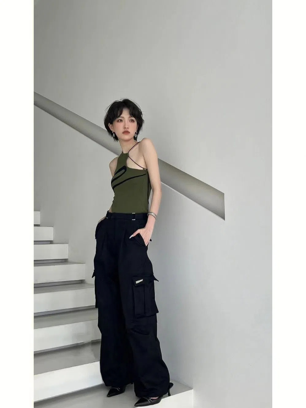 Irregular Lace-up Vest Camisole Women's Slit Oblique Short Top