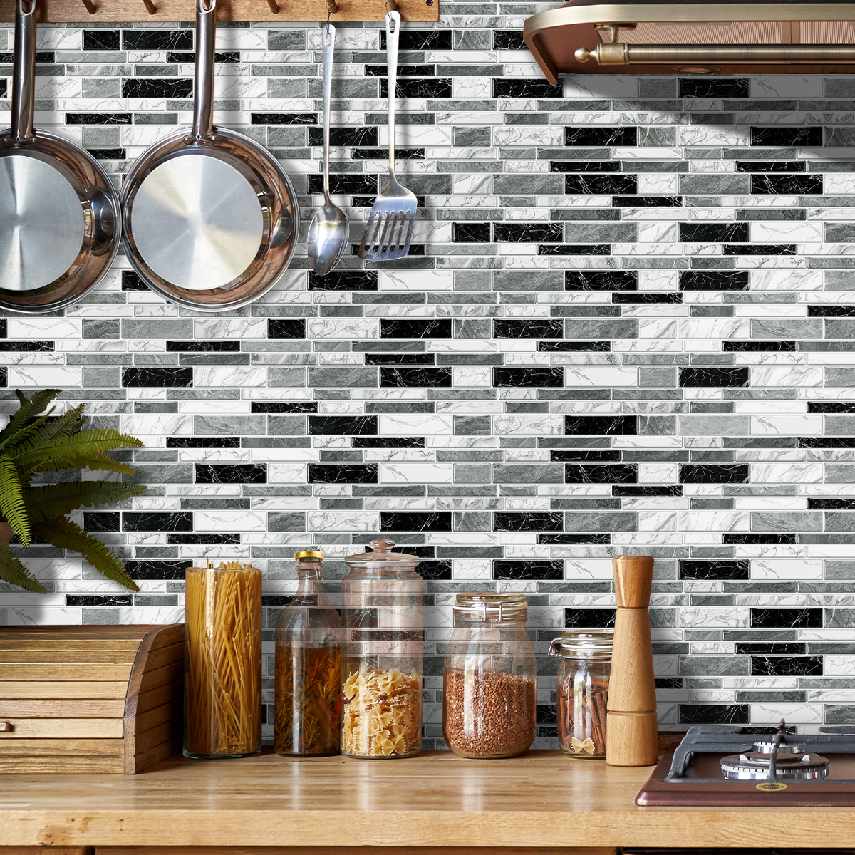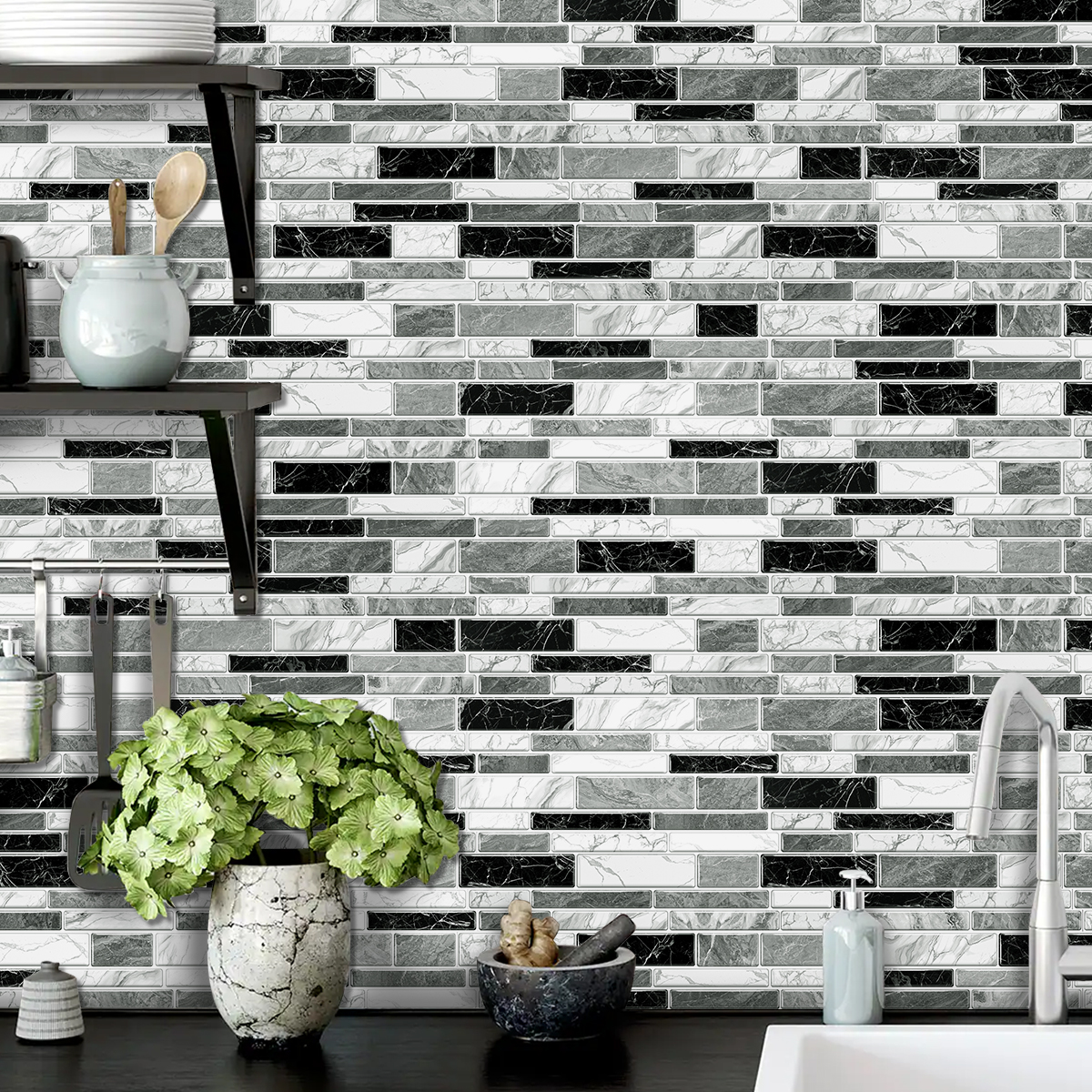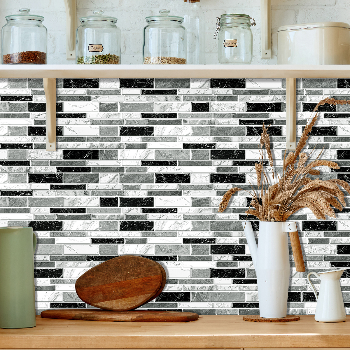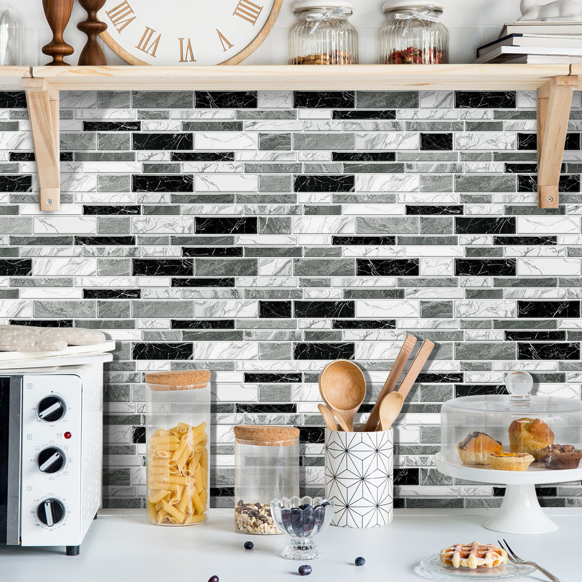 Irregular PVC Black White Gray Marble Pattern Classic Imitation Tile Self-adhesive Kitchen Bathroom Wallpaper Waterproof And Oil Proof Wallpaper Easy To Install
