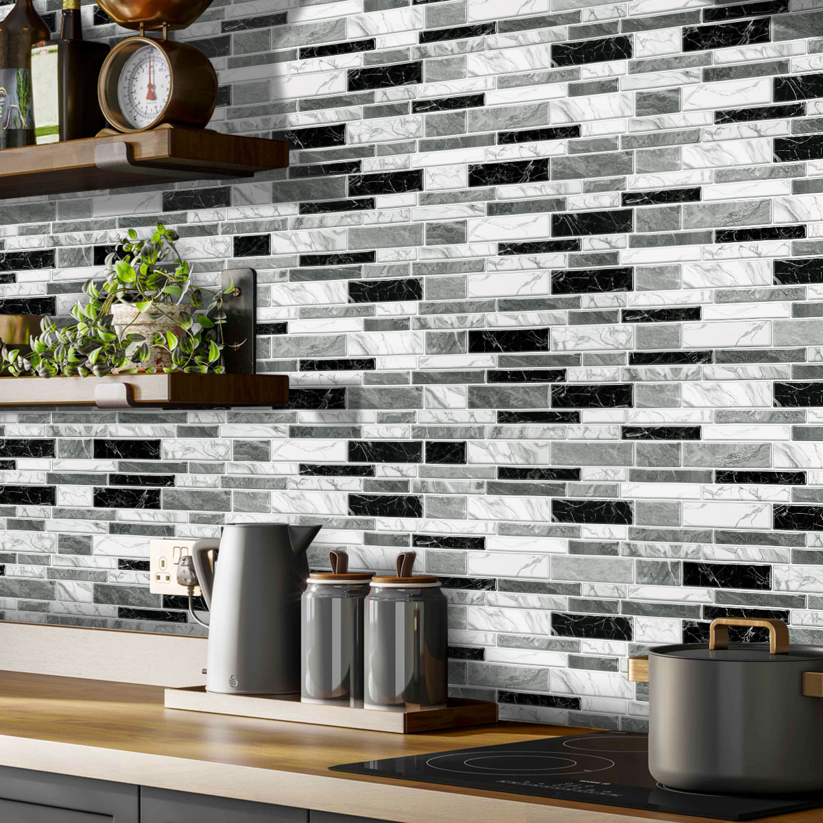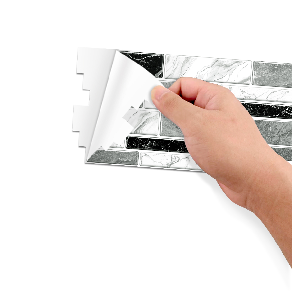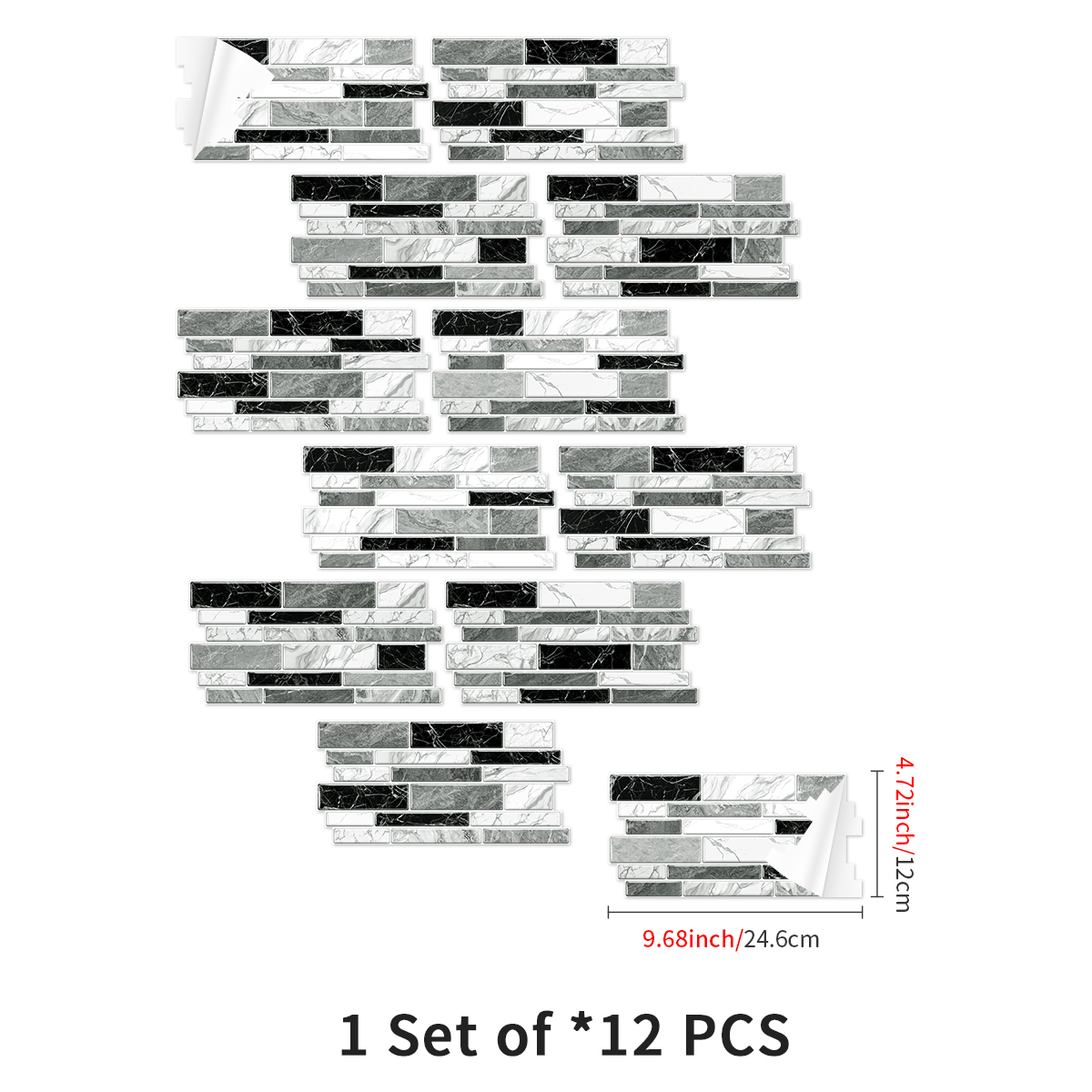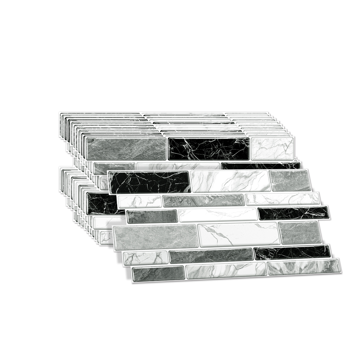 Irregular PVC Black White Gray Marble Pattern Classic Imitation Tile Self-adhesive Kitchen Bathroom Wallpaper Waterproof And Oil Proof Wallpaper Easy To Install