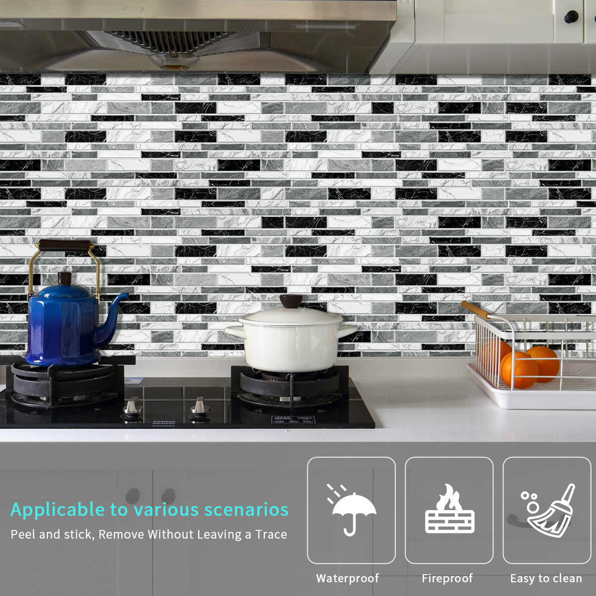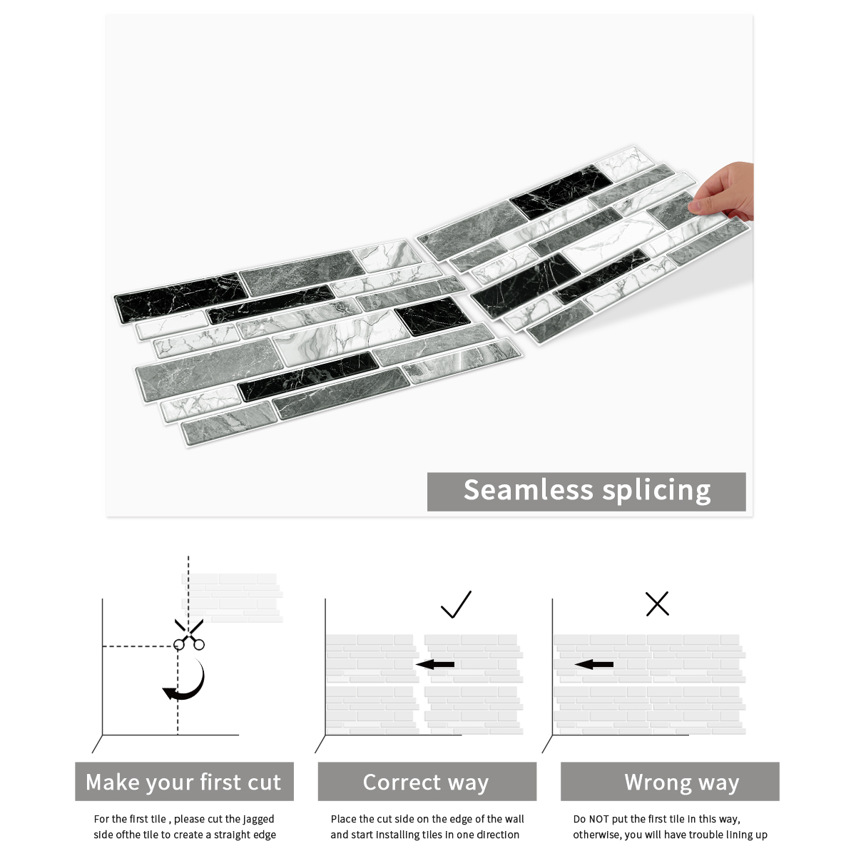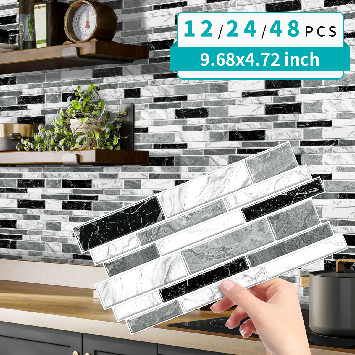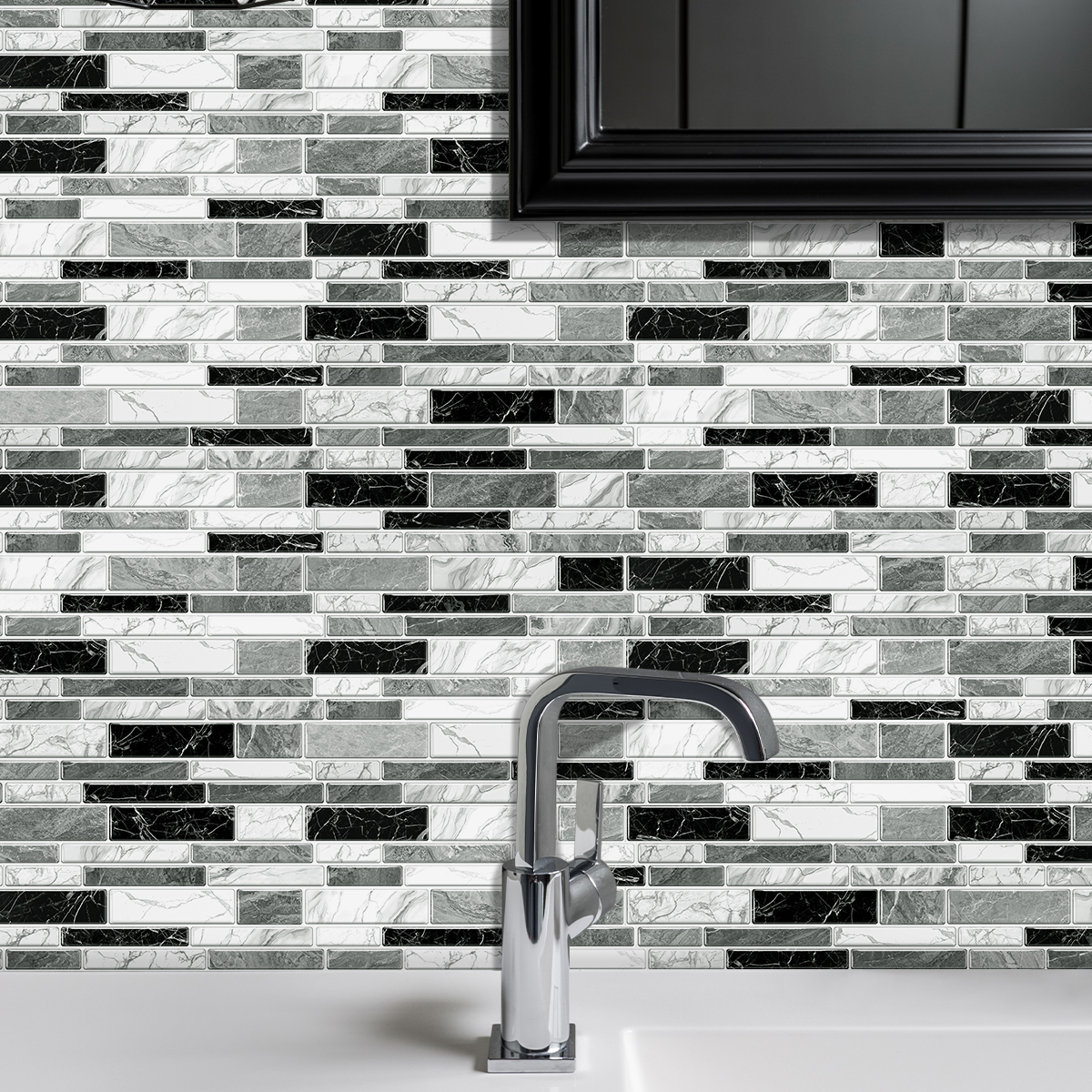 Irregular PVC Black White Gray Marble Pattern Classic Imitation Tile Self-adhesive Kitchen Bathroom Wallpaper Waterproof And Oil Proof Wallpaper Easy To Install