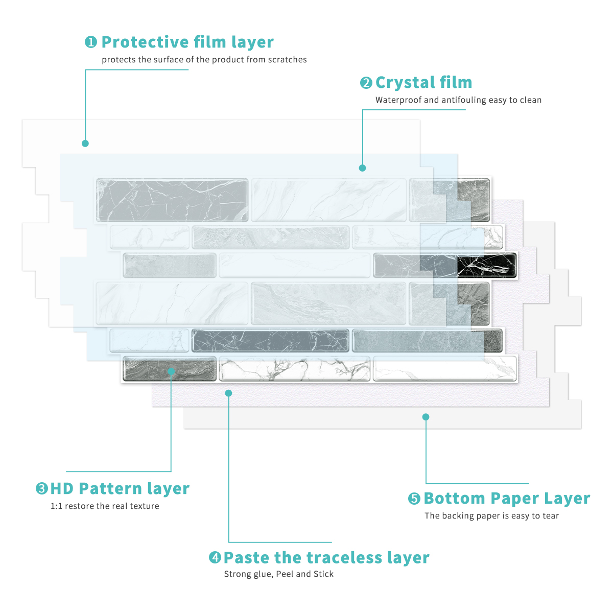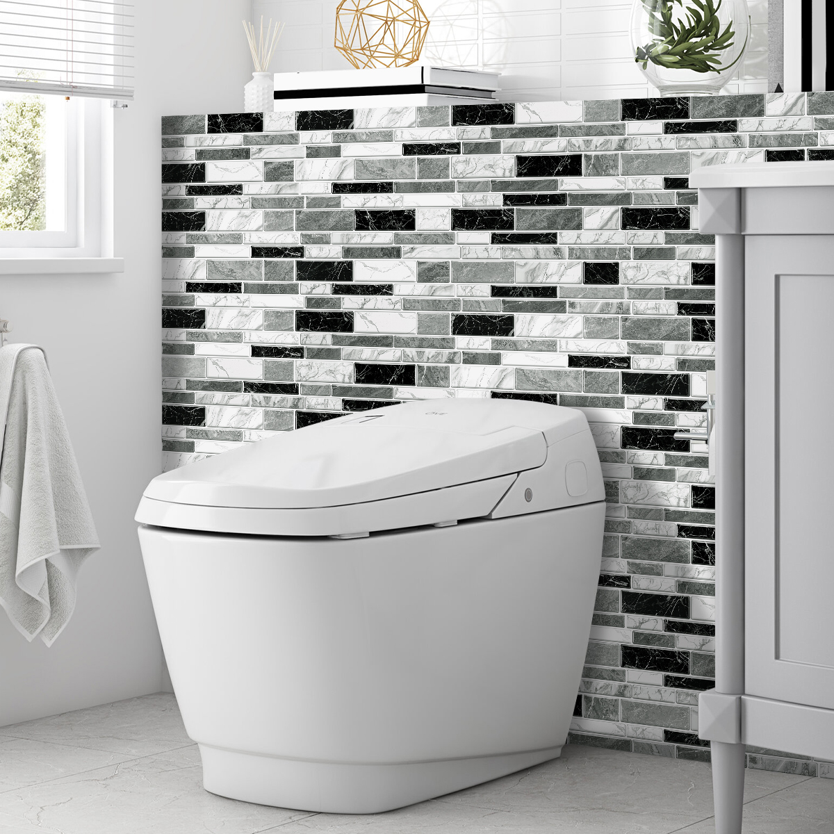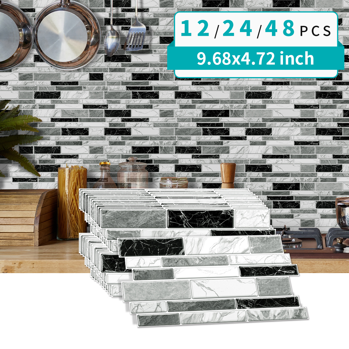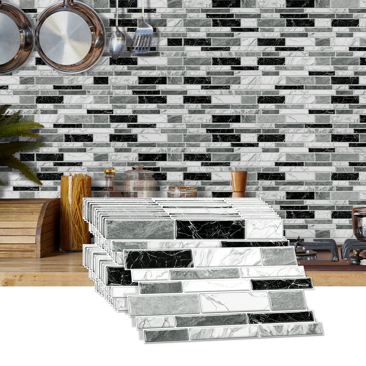 Irregular PVC Black White Gray Marble Pattern Classic Imitation Tile Self-adhesive Kitchen Bathroom Wallpaper Waterproof And Oil Proof Wallpaper Easy To Install