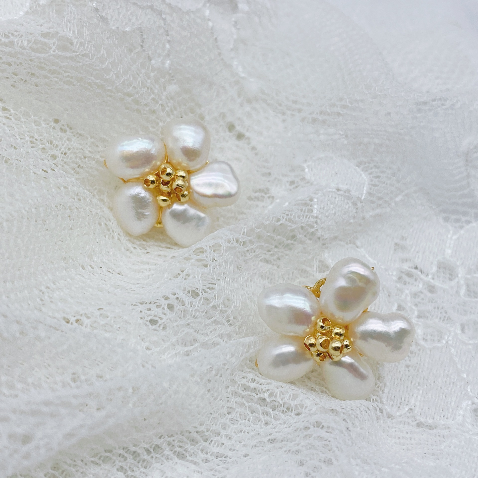 Colors: 5101 Gold with White Pearl, 5101 Silver with White Pearl, 5143 Pink-Purple with Gold, 5103 Gold, 5101 Silver White Pearl Stud Earrings