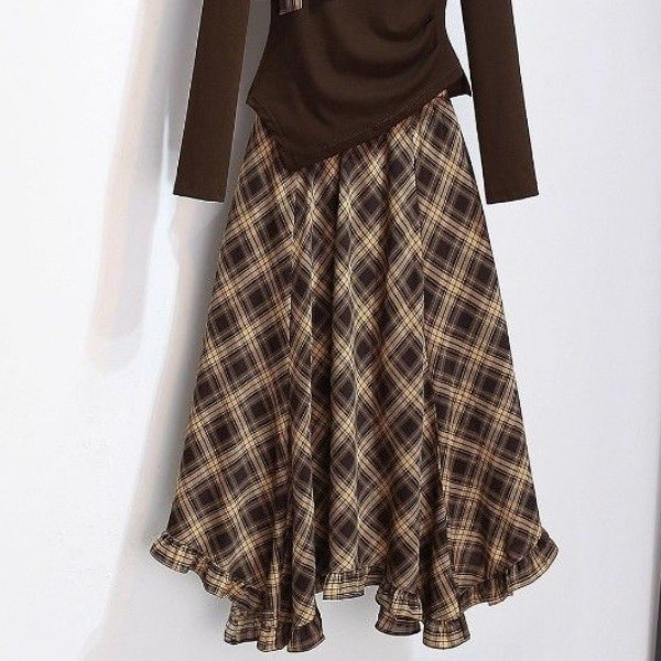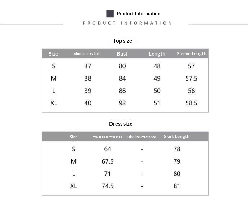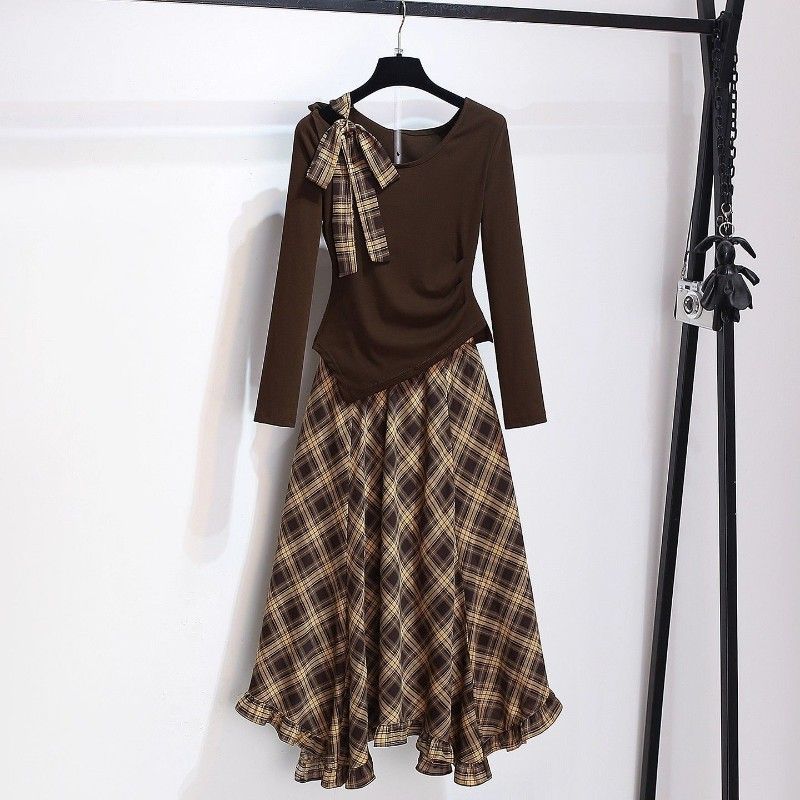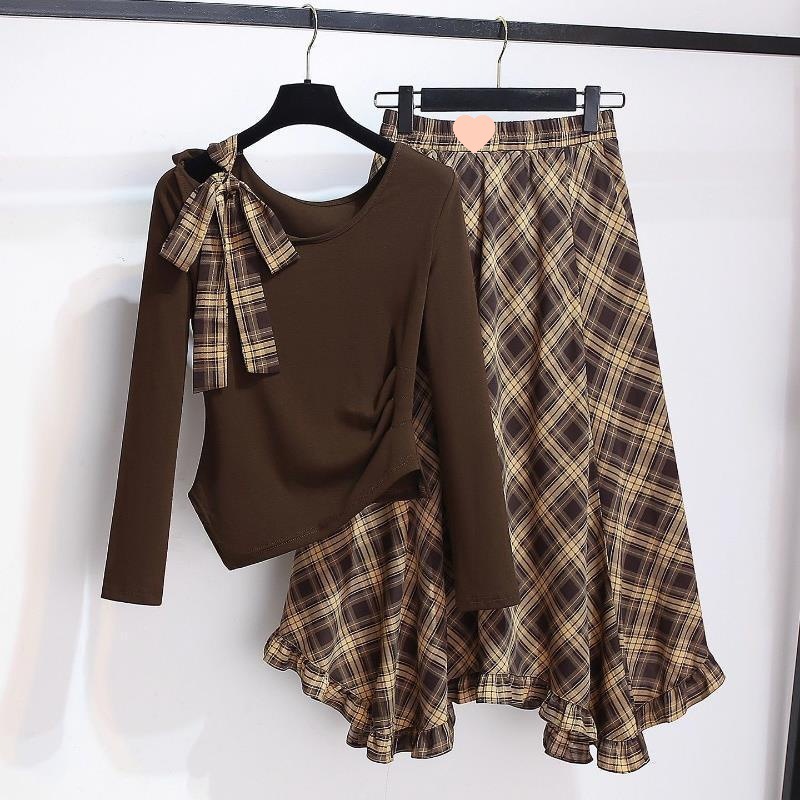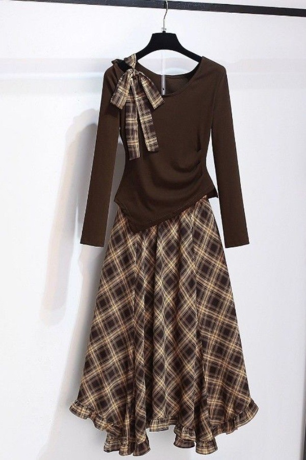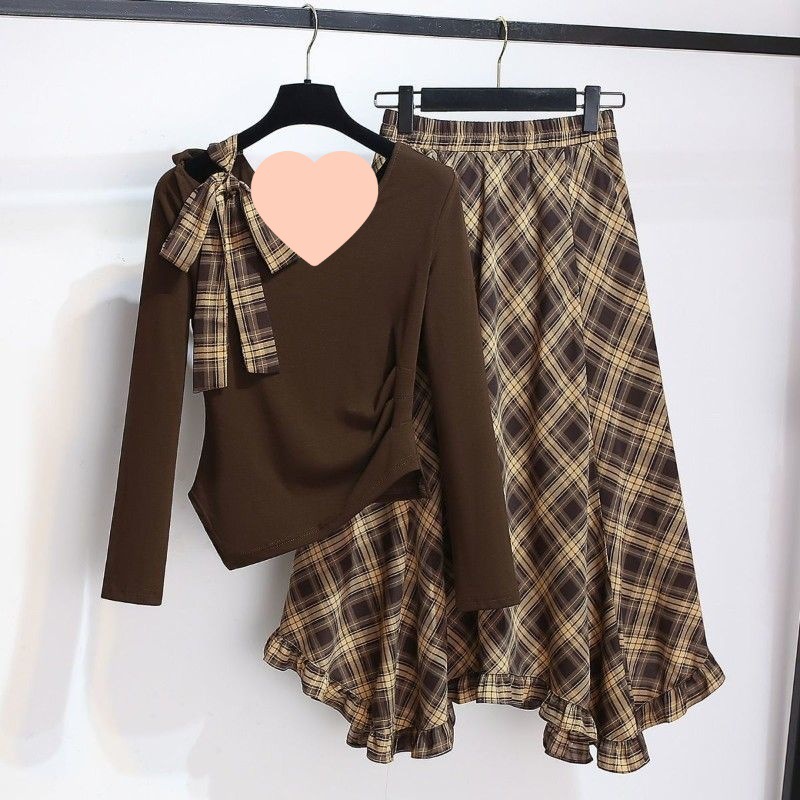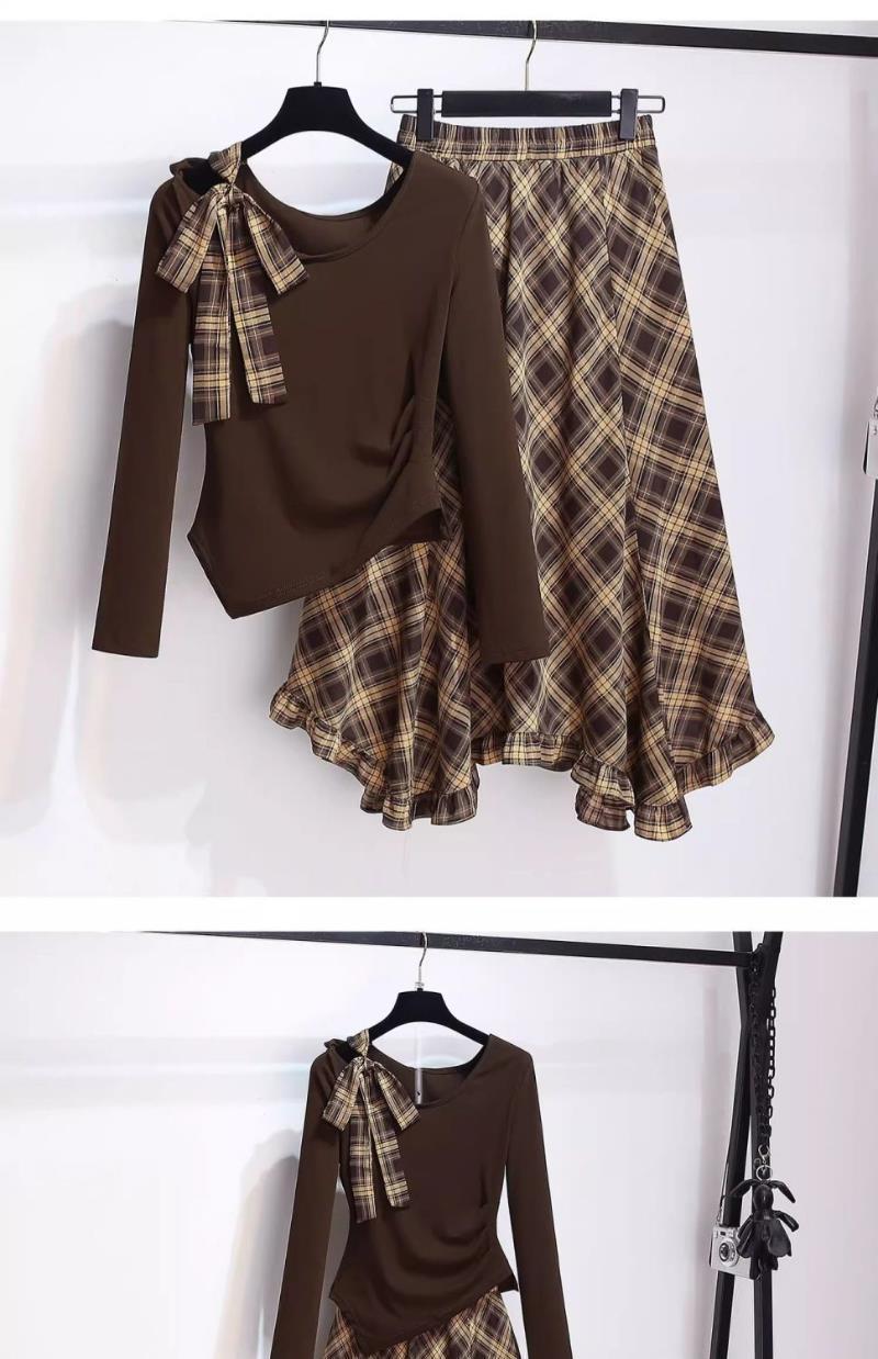 Colors: Coffee-colored top (single piece), coffee-colored skirt (single piece), coffee-colored top + coffee-colored skirt