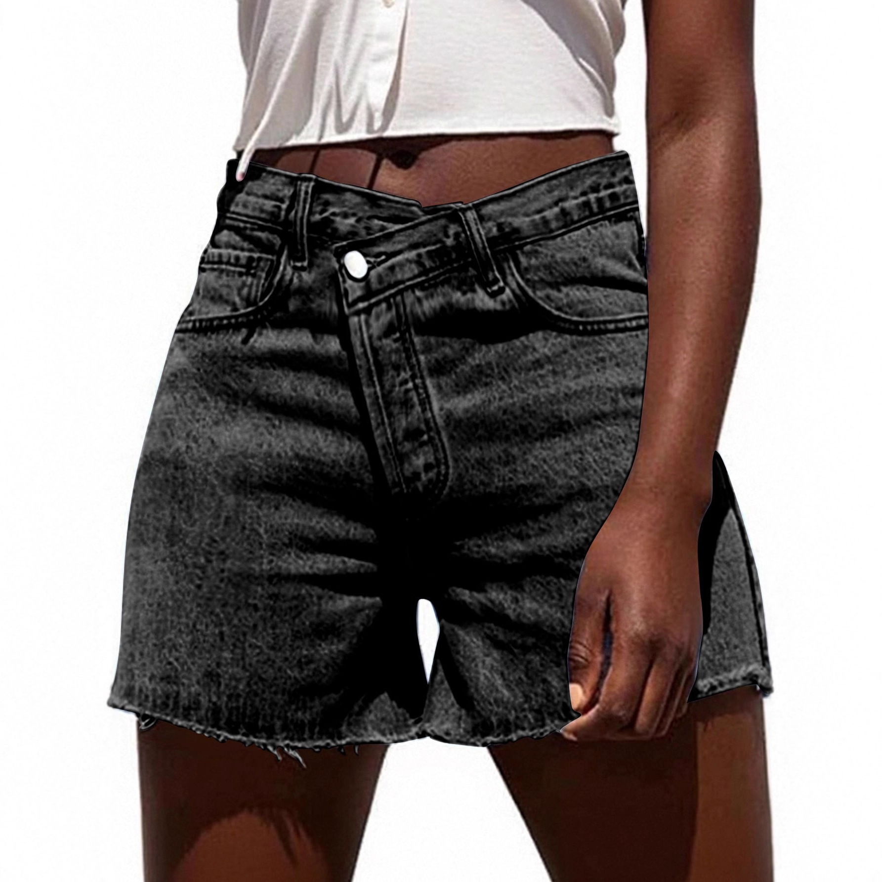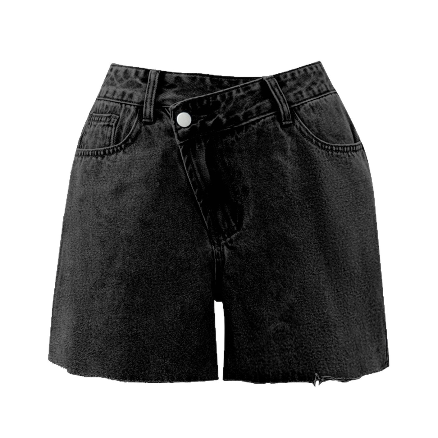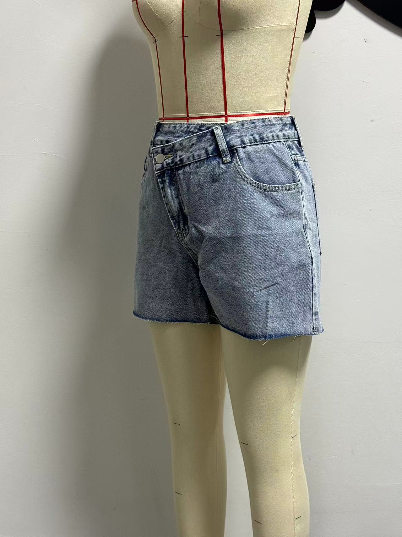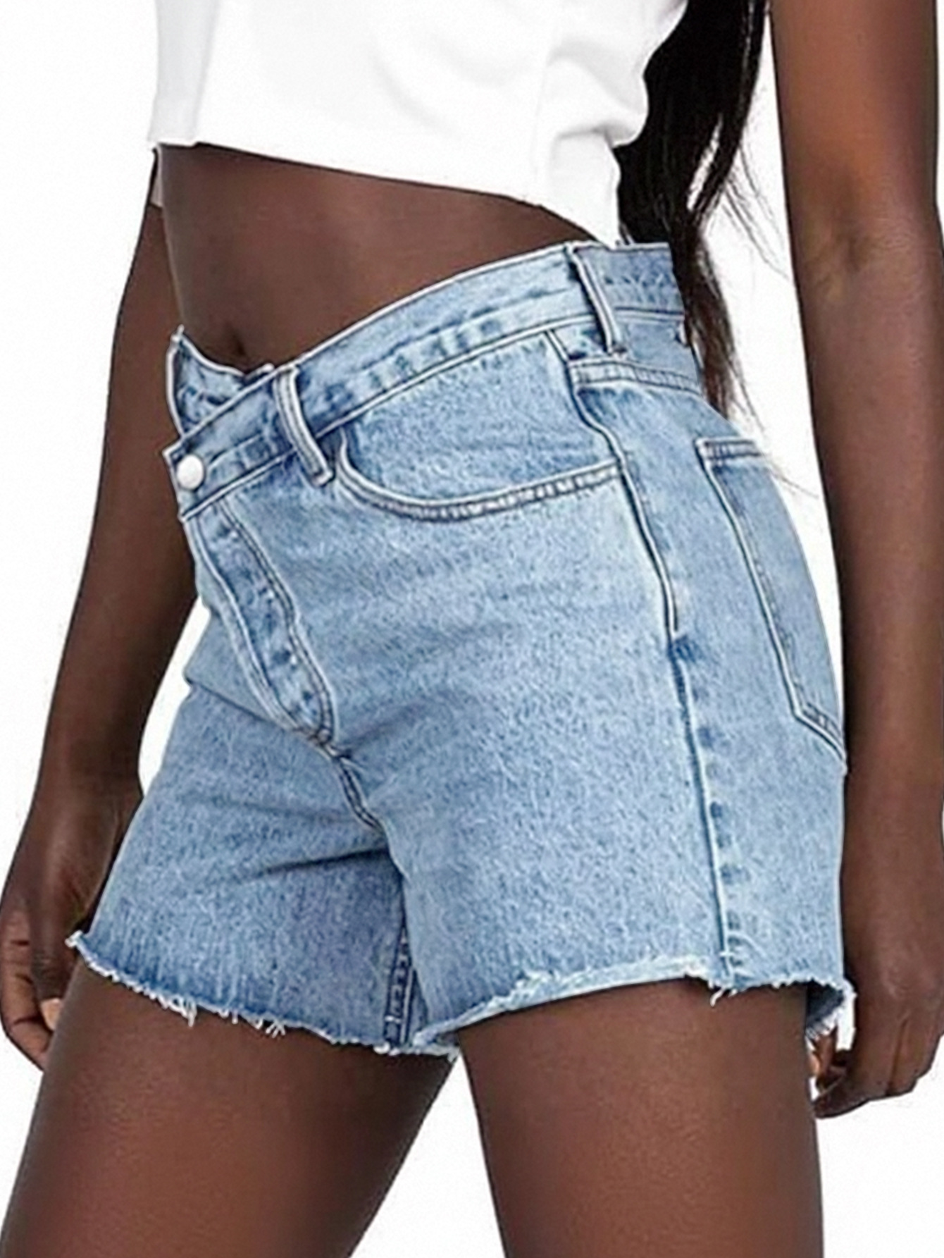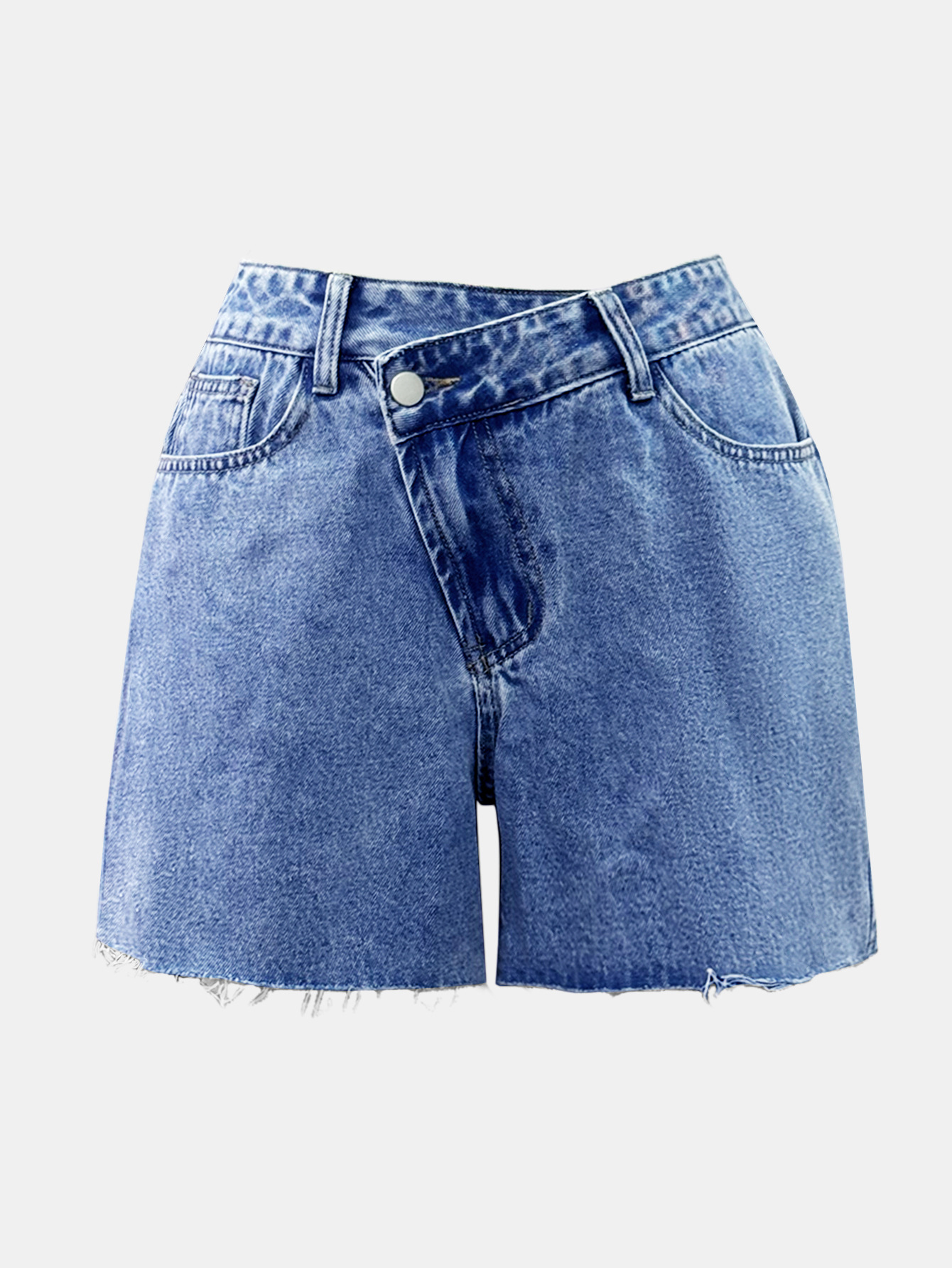 Irregular Slant-waist Raw-edge Denim Shorts