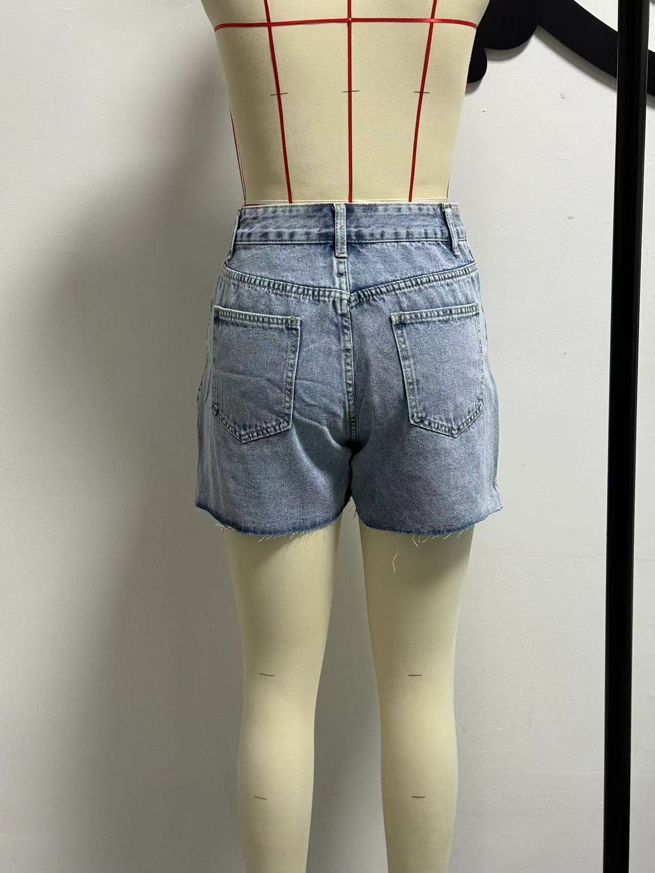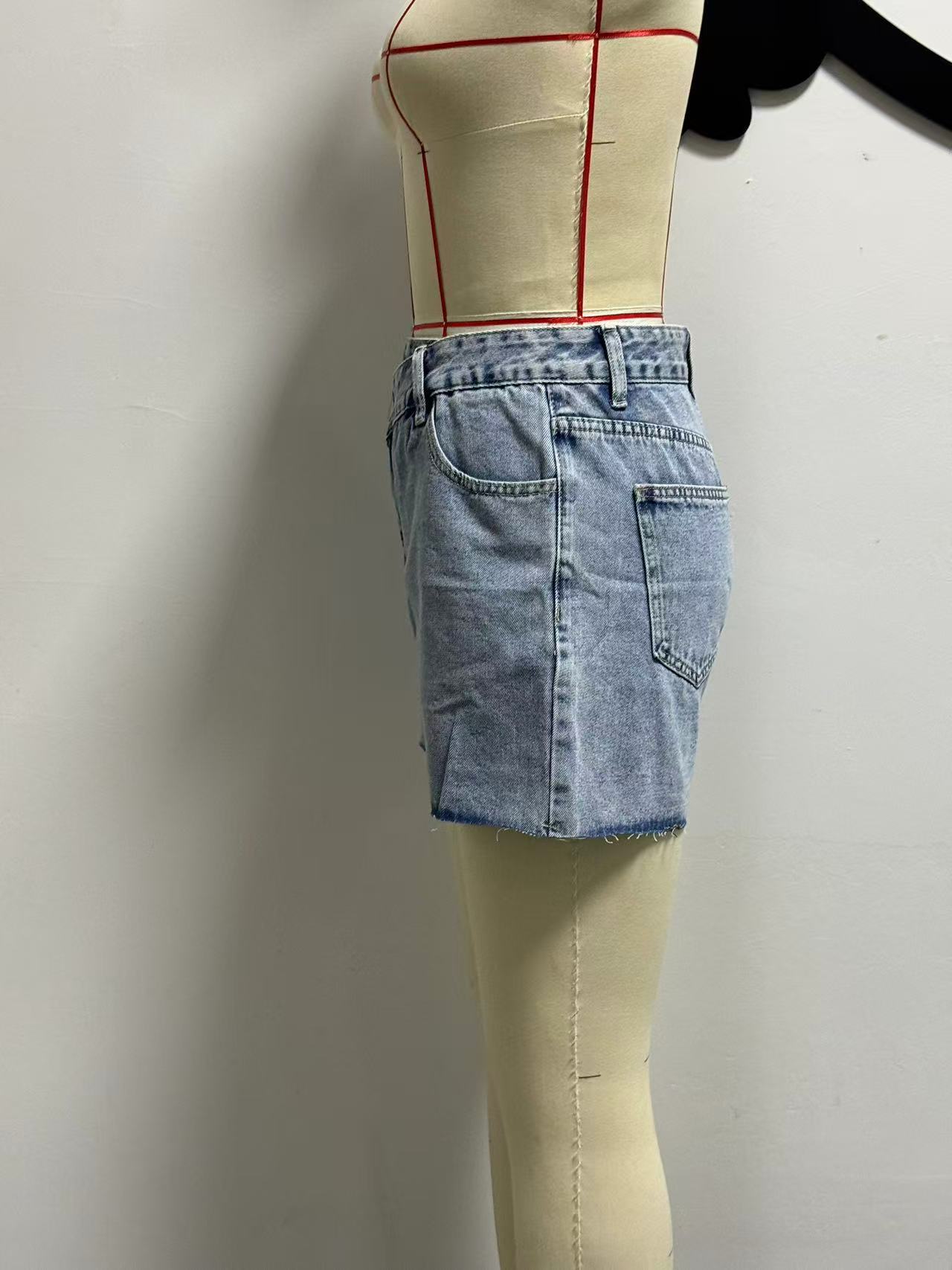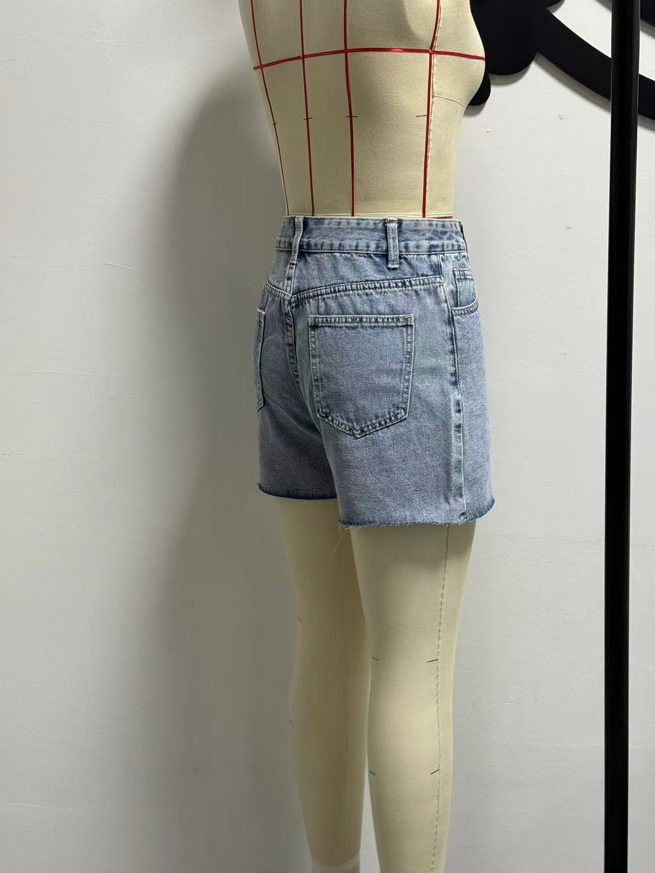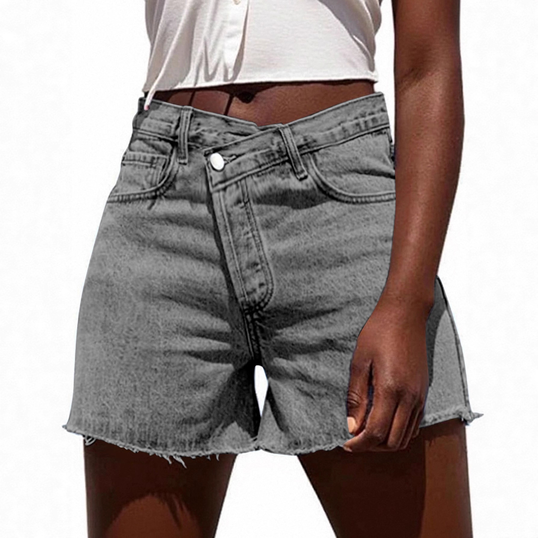 Irregular Slant-waist Raw-edge Denim Shorts