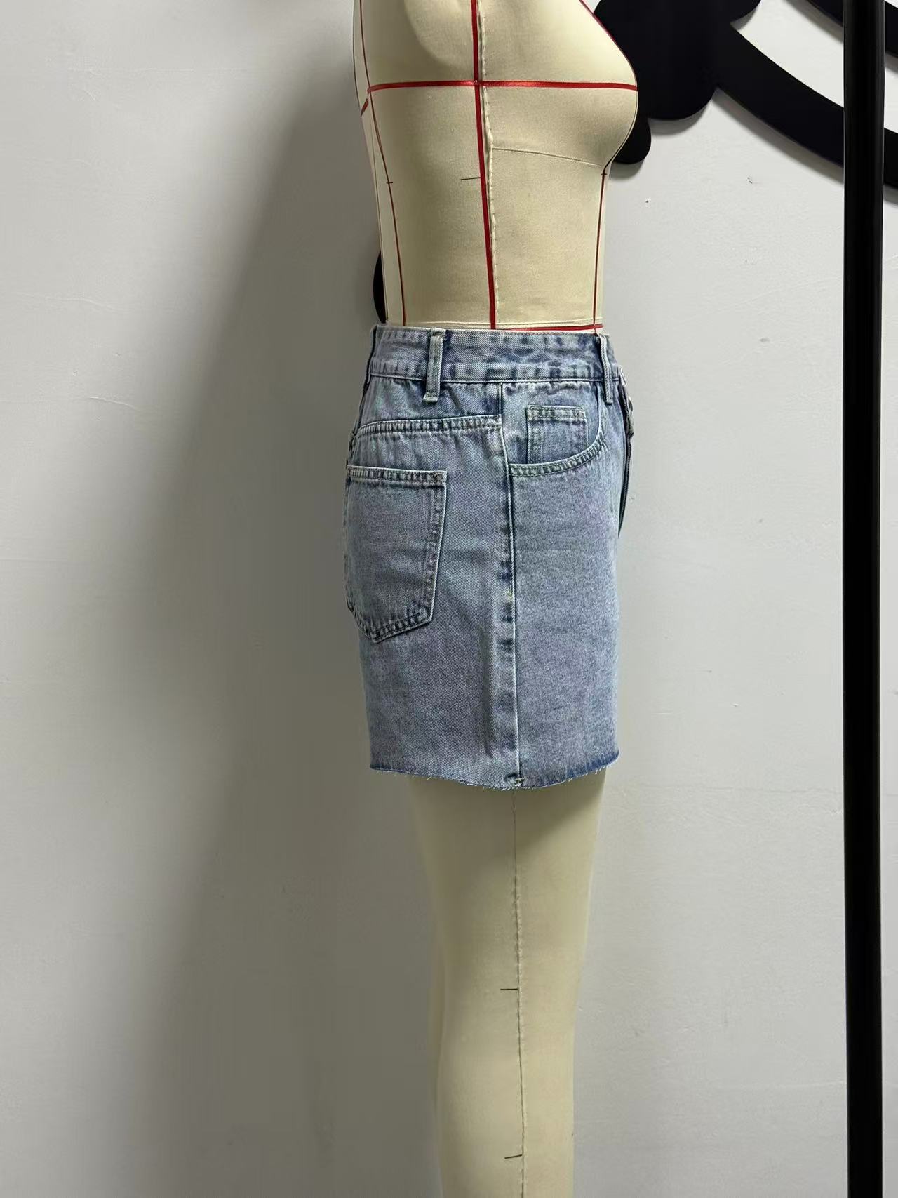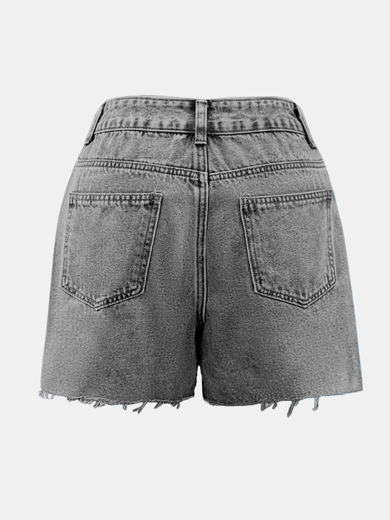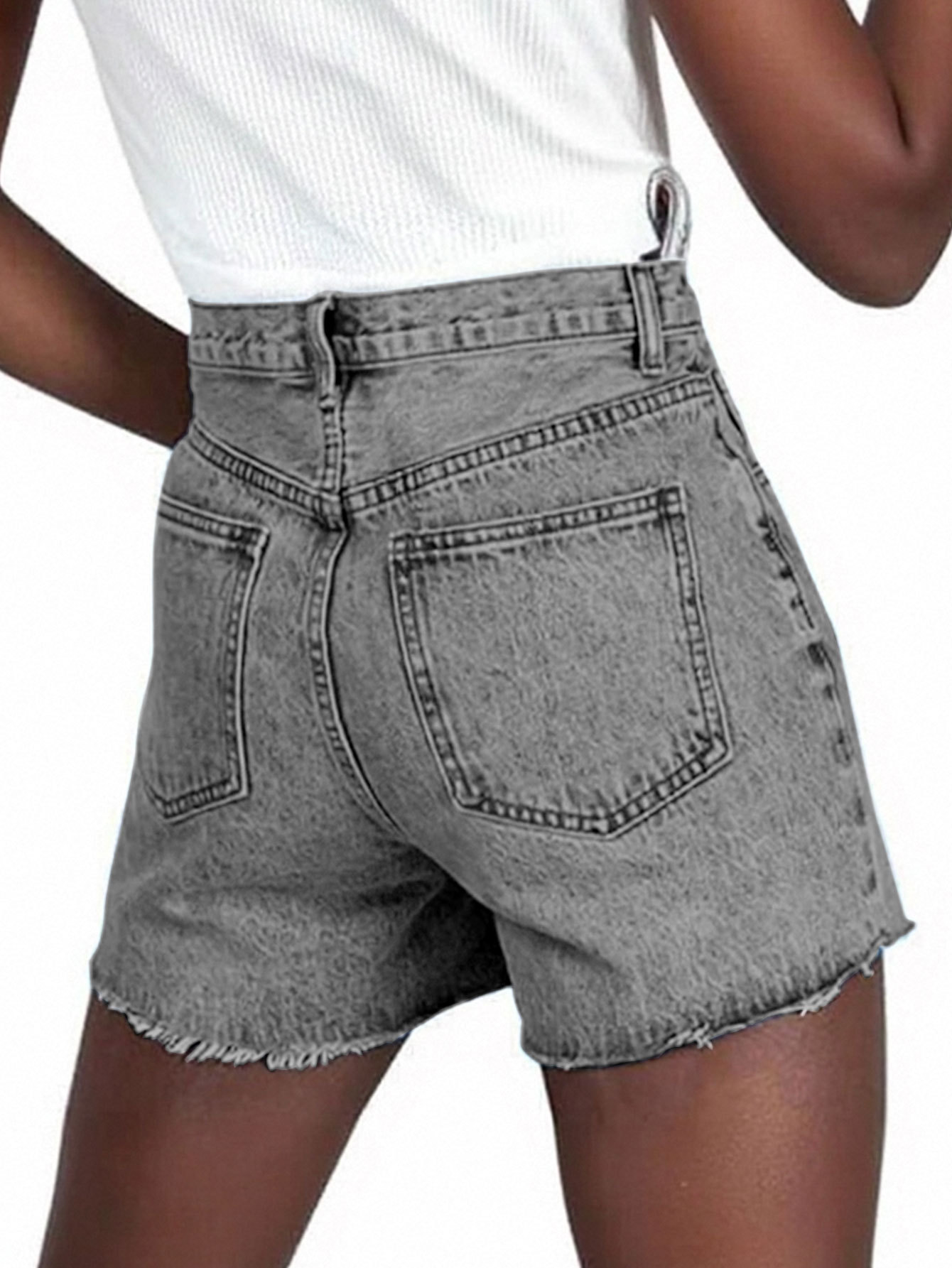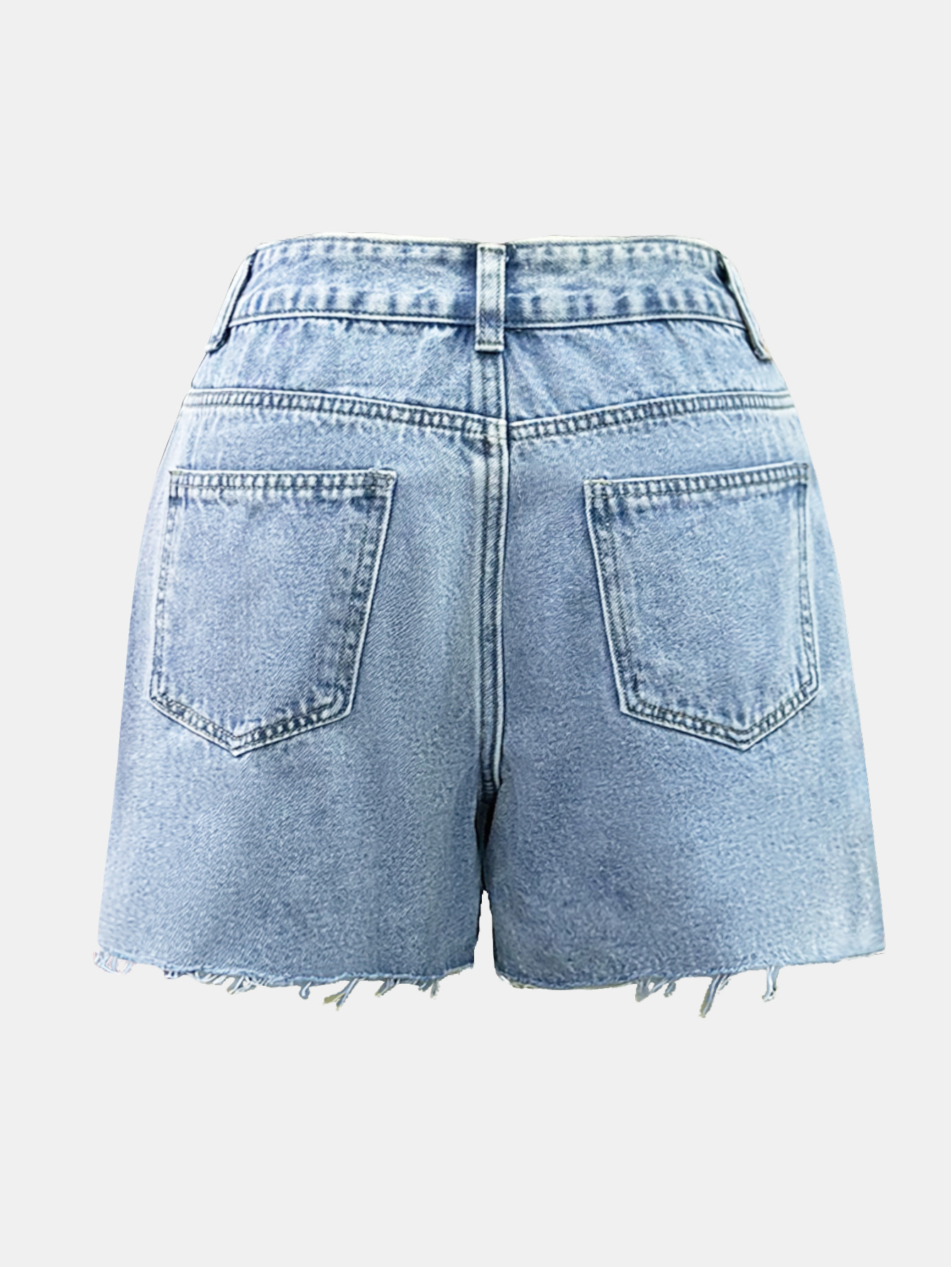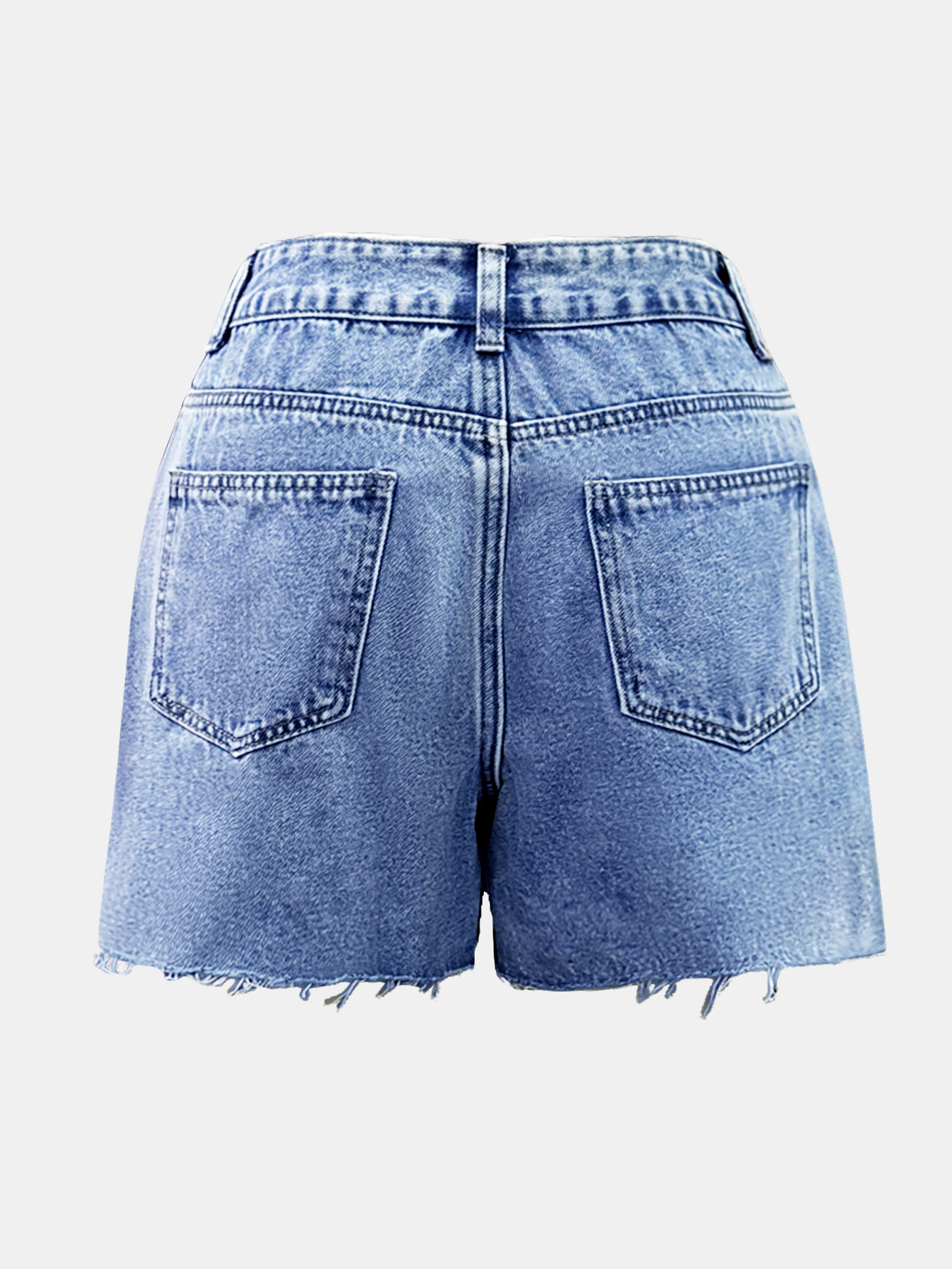 Irregular Slant-waist Raw-edge Denim Shorts
