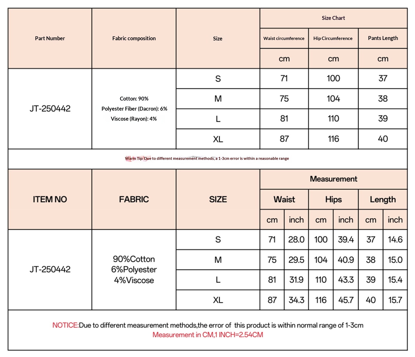 Main fabric composition: cotton