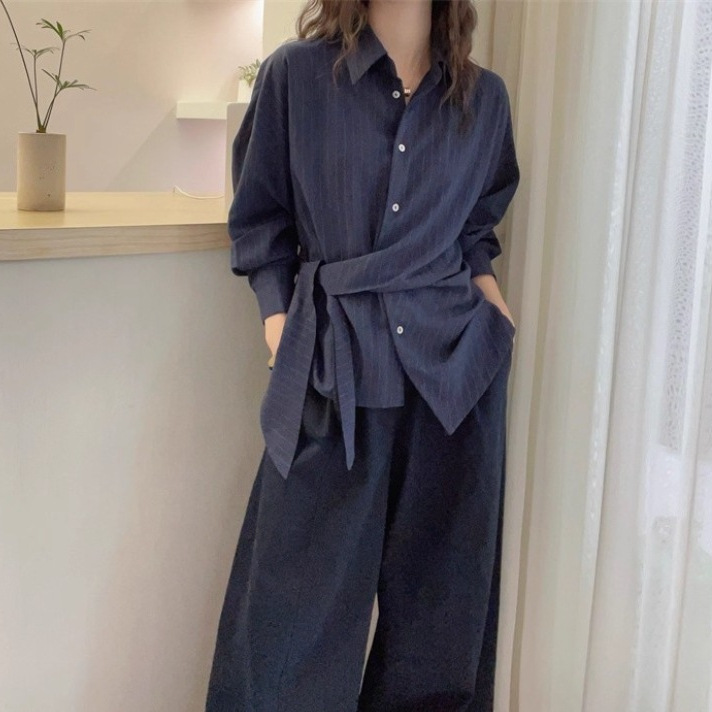 Irregular Strap Waist-cinching Striped Women's Slim-fit Versatile Top