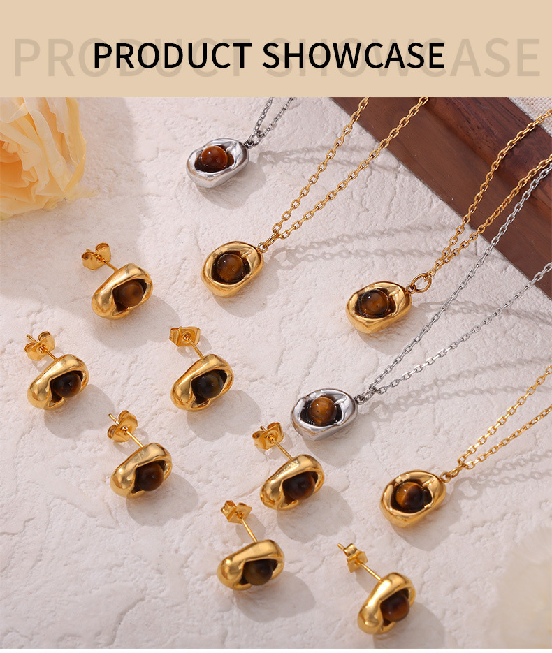Material: Titanium Steel + Tiger Eye Stone