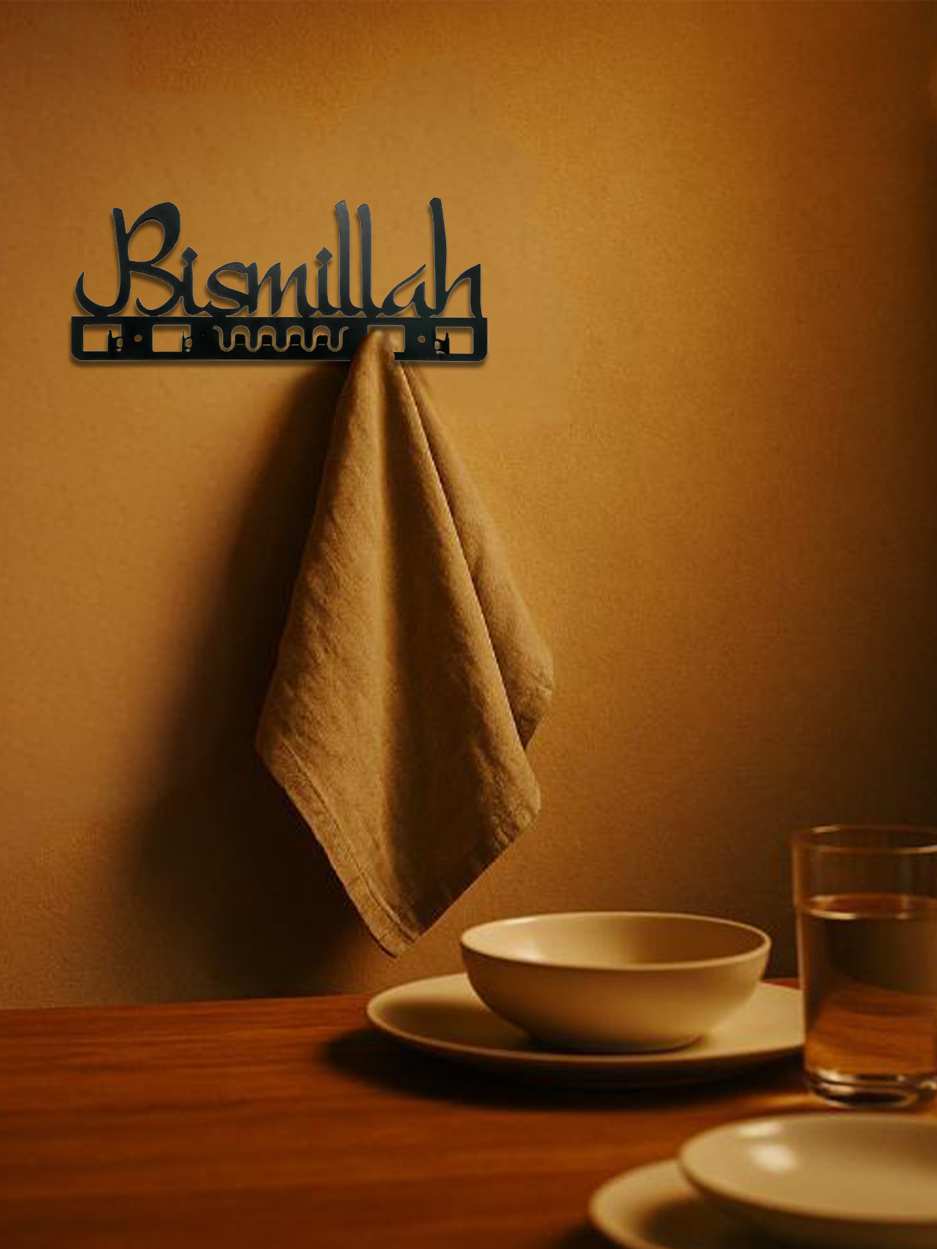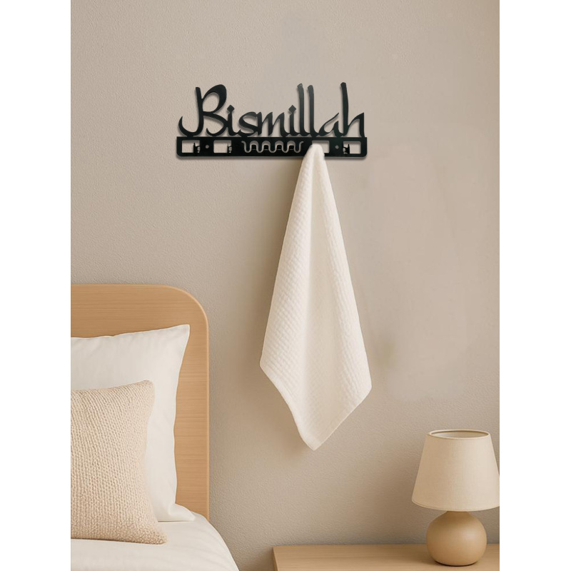 Islamic Decorative Metal Key Holder - Delightful Arab-Style Wall Art with Geometric Calligraphy, Utility Hooks for Keys, Perfect Muslim Gift & Bathroom Decor, Stylish Religious Home Accent Wall Sculptures