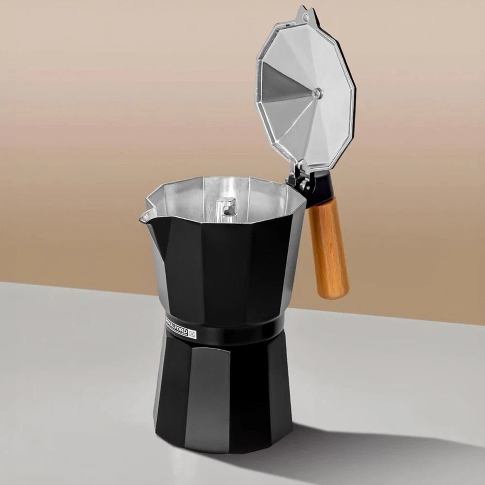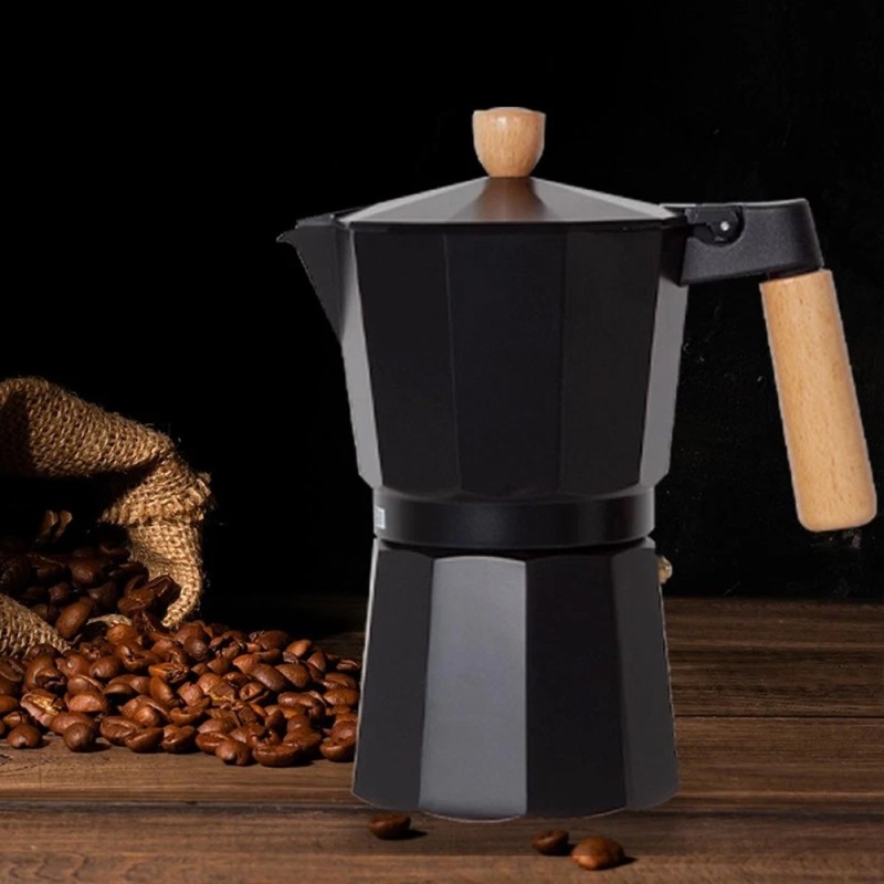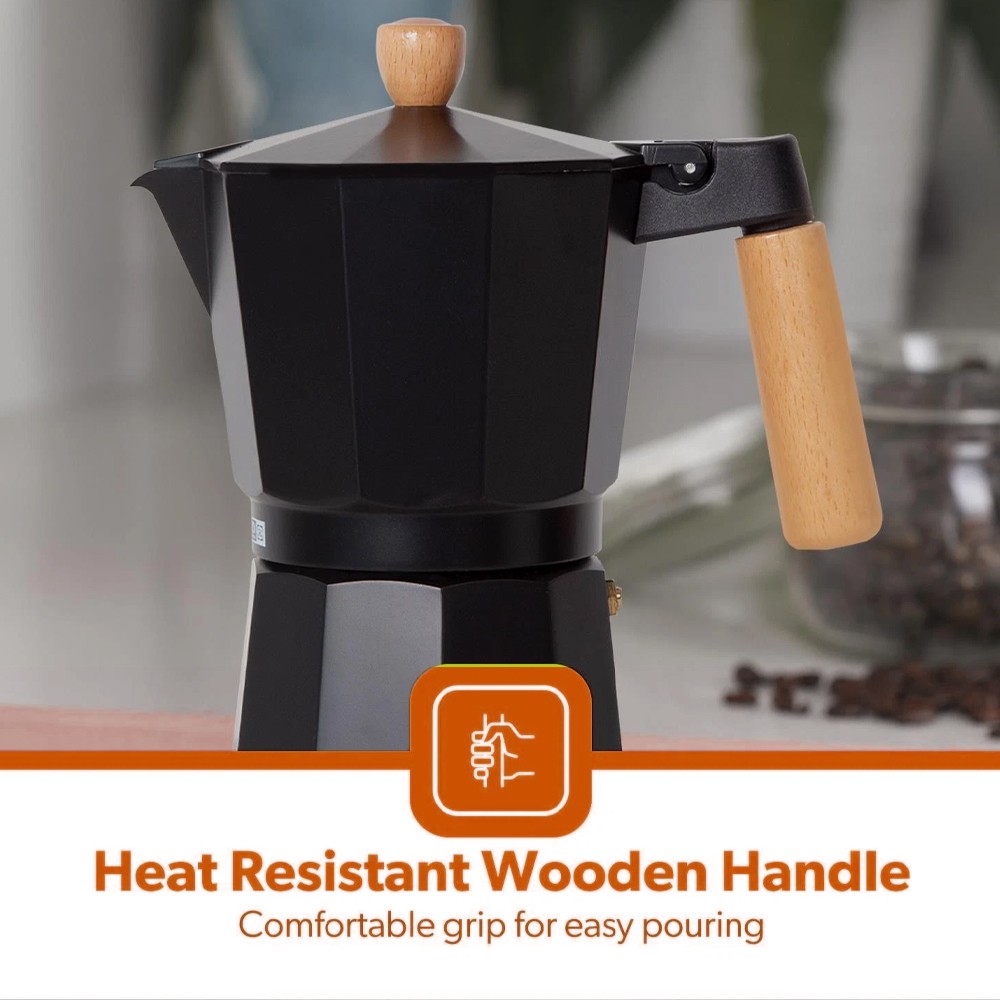 -PREMIUM BUILD HIGH-GRADE ALUMINUM BODY - The pot features distinctive eight-sided shape that allows it to diffuse heat perfectly to enhance the aroma of your coffee. And the aluminium metal conducts heat efficiently & distributes it evenly giving a smooth texture to the coffee.