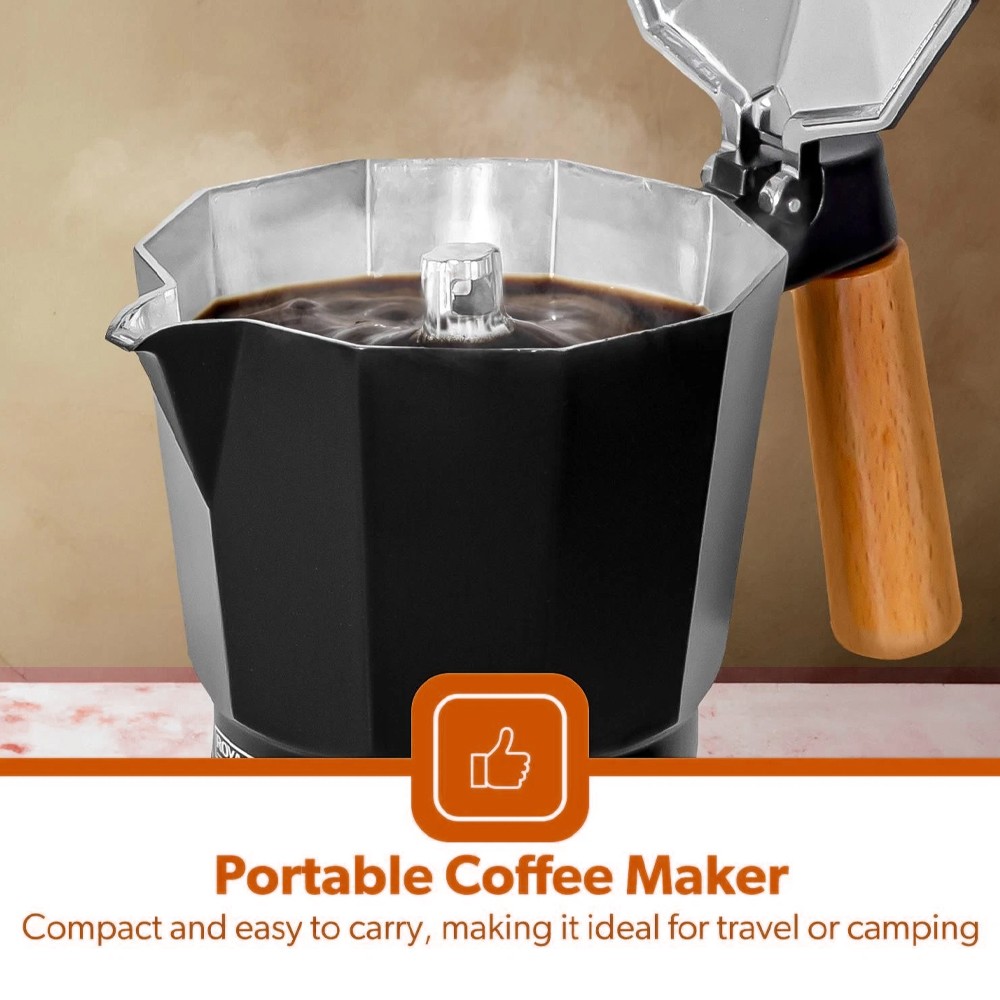 -PORTABLE COFFEE MAKER – Compatible with an electrical or gas ring, ceramic or camping stove and most other types of cooking heat source (not compatible with induction cooker rings). Small and compact design makes this one of the best options as a travel coffee maker.