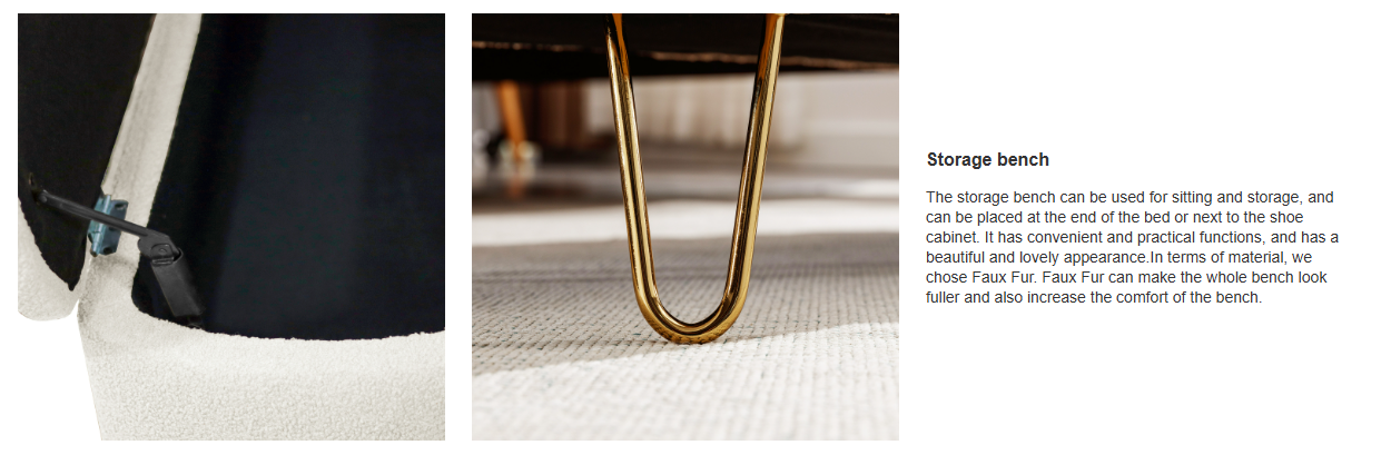 Product Name:Ivory White Storage Ottoman Bench for End of Bed Gold Legs, Modern Ivory White Faux Fur Entryway Bench Upholstered Padded with Storage for Living Room Bedroom