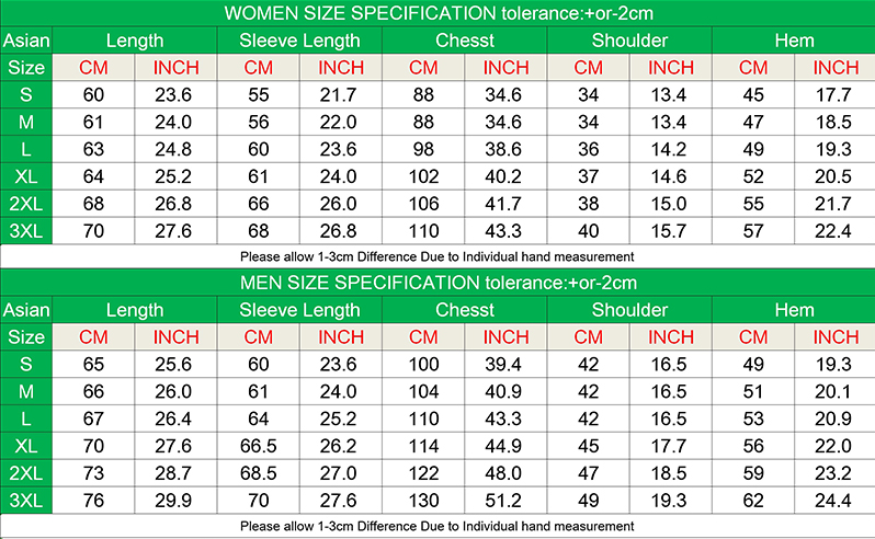 1. Asian sizes are 1 to 2 sizes smaller than European and American people. Choose the larger size if your size between two sizes. Please allow 2-3cm differences due to manual measurement.